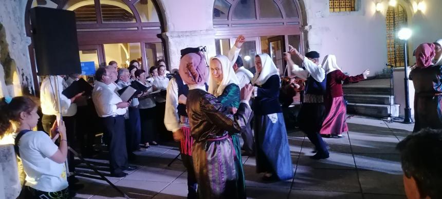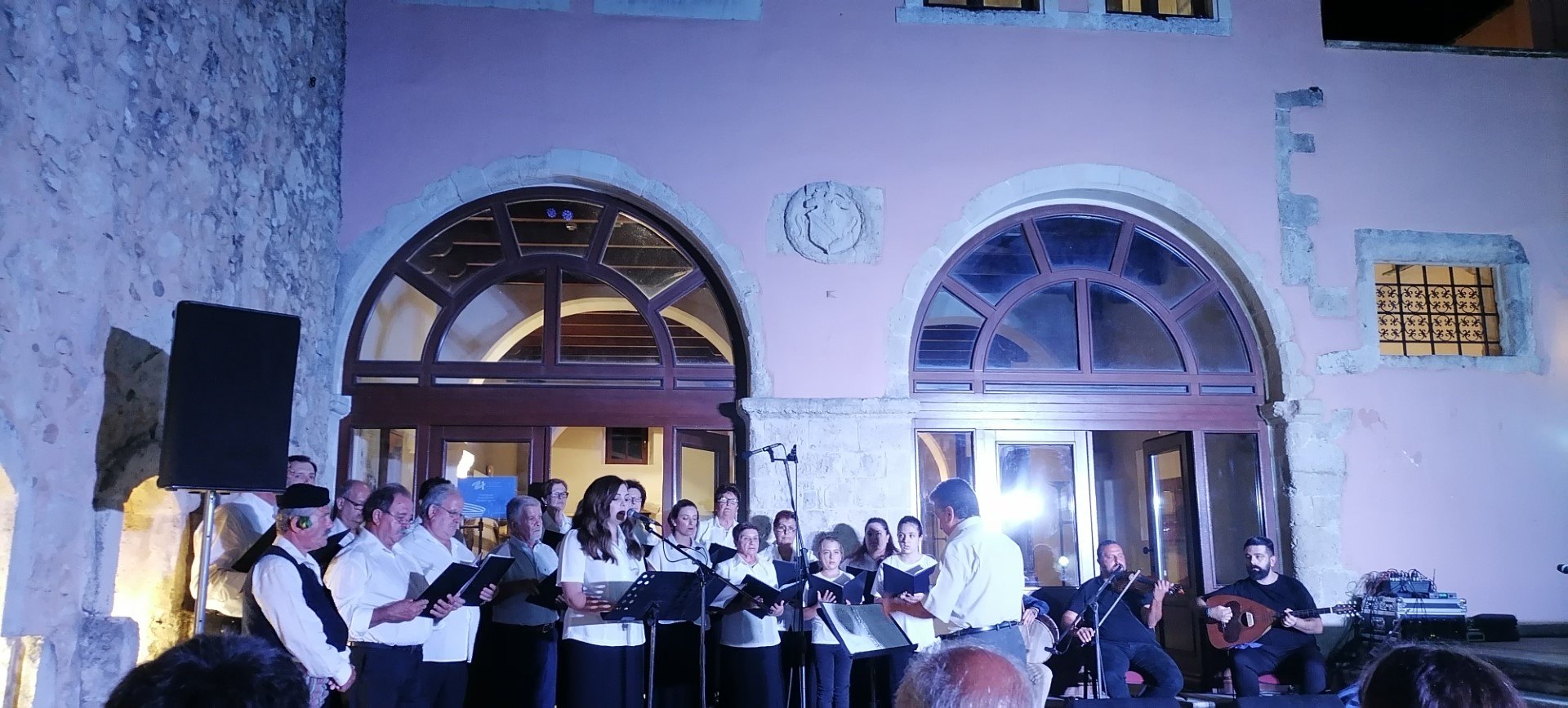 Στον αύλιο εσωτερικό χώρο του καλαίσθητου μουσείου που αναδύει θετική αύρα, τα μέλη της χορωδίας Ρεθυμνίων Μικρασιατών, υπό την διεύθυνση του κορυφαίου Ανδρέα Γιακουμάκη, έδωσαν τον καλύτερό της εαυτό, ερμηνεύοντας από την μια επετειακά τραγούδια για τη μεγάλη συμφορά και από την άλλη, τραγούδια που έλεγαν οι Μικρασιάτες στα γλέντια τους στην Πατρίδα. Σε ορισμένα τραγούδια μάλιστα , χόρευαν τα μερακλίδικα παιδιά του Λυκείου των Ελληνίδων Ρεθύμνης, καρσιλαμάδες, συρτούς και γοργό μακελάρικο (χασαποσέρβικο). Ιδιαίτερο χειροκρότημα έλαβε ο Μικρασιάτης χορωδός Σιδερής Μαρίνος, που χόρεψε με τον παλαιό πατροπαράδοτο τρόπο, τον Αϊβαλώτικο Ζεϊμπέκικο, όπως του τον δίδαξαν οι προπάτορές του από την ιστορική Ιωνία.