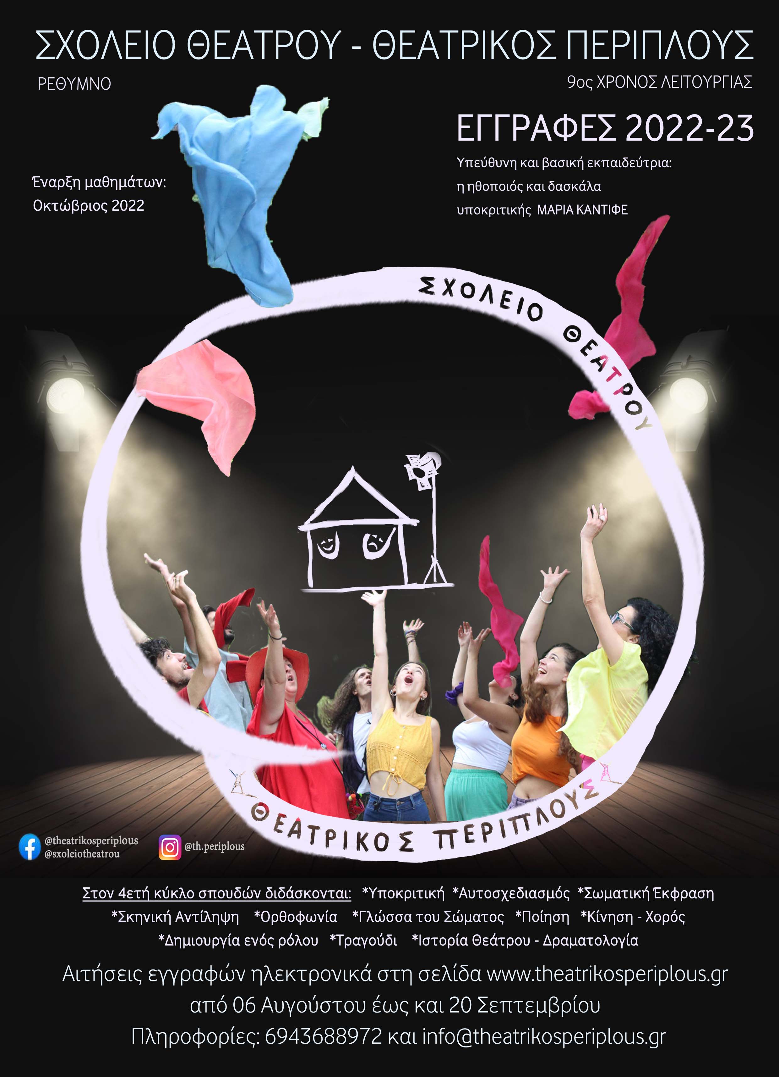 Facebook: @theatrikosperiplous και @sxoleiotheatrou / Instagram: @th.periplous