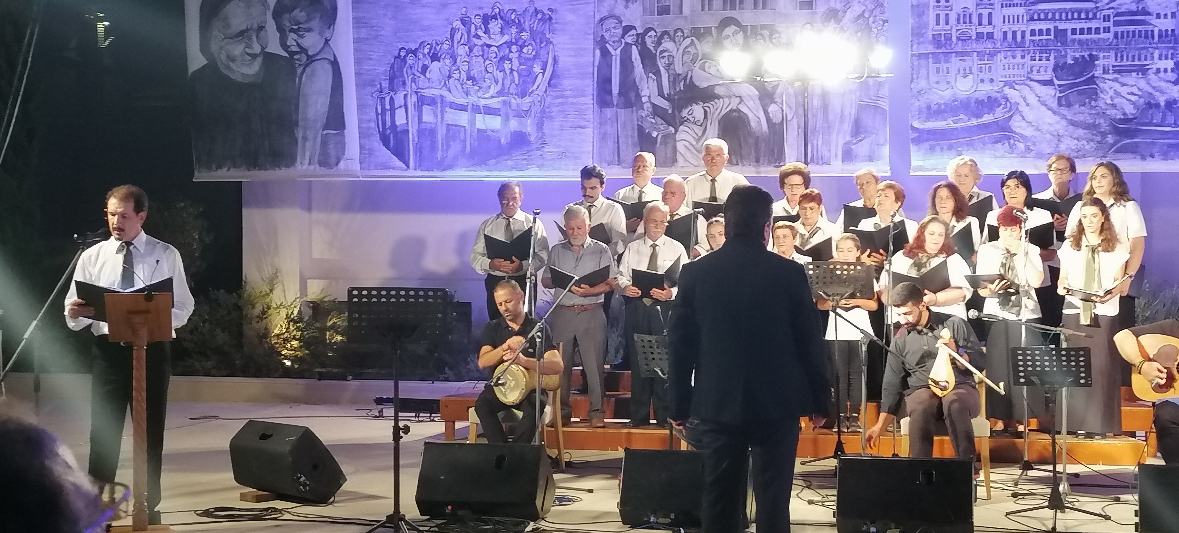 Η εκδήλωση μνήμης είχε τίτλο «Μικρασιατών 100χρονα…….. Από τις αλησμόνητες πατρίδες στο Ρέθυμνο» και διοργανώθηκε με την υποστήριξη της Περιφέρειας Κρήτης. Αρχικά τα μέλη της Χορωδίας της Σχολής Εκκλησιαστικής Βυζαντινής Μουσικής της Ιεράς Μητροπόλεως Ρεθύμνης και Αυλοποτάμου υπό την Διεύθυνση του Πρωτοψάλτου του Ιερού Μητροπολιτικού μας ναού και Διευθυντού της Σχολής κ Ευάγγελου Καπαϊδονάκη έψαλλαν κατανυκτικά θεομητορικούς ύμνους, αποσπώντας το πιο θερμό χειροκρότημα.