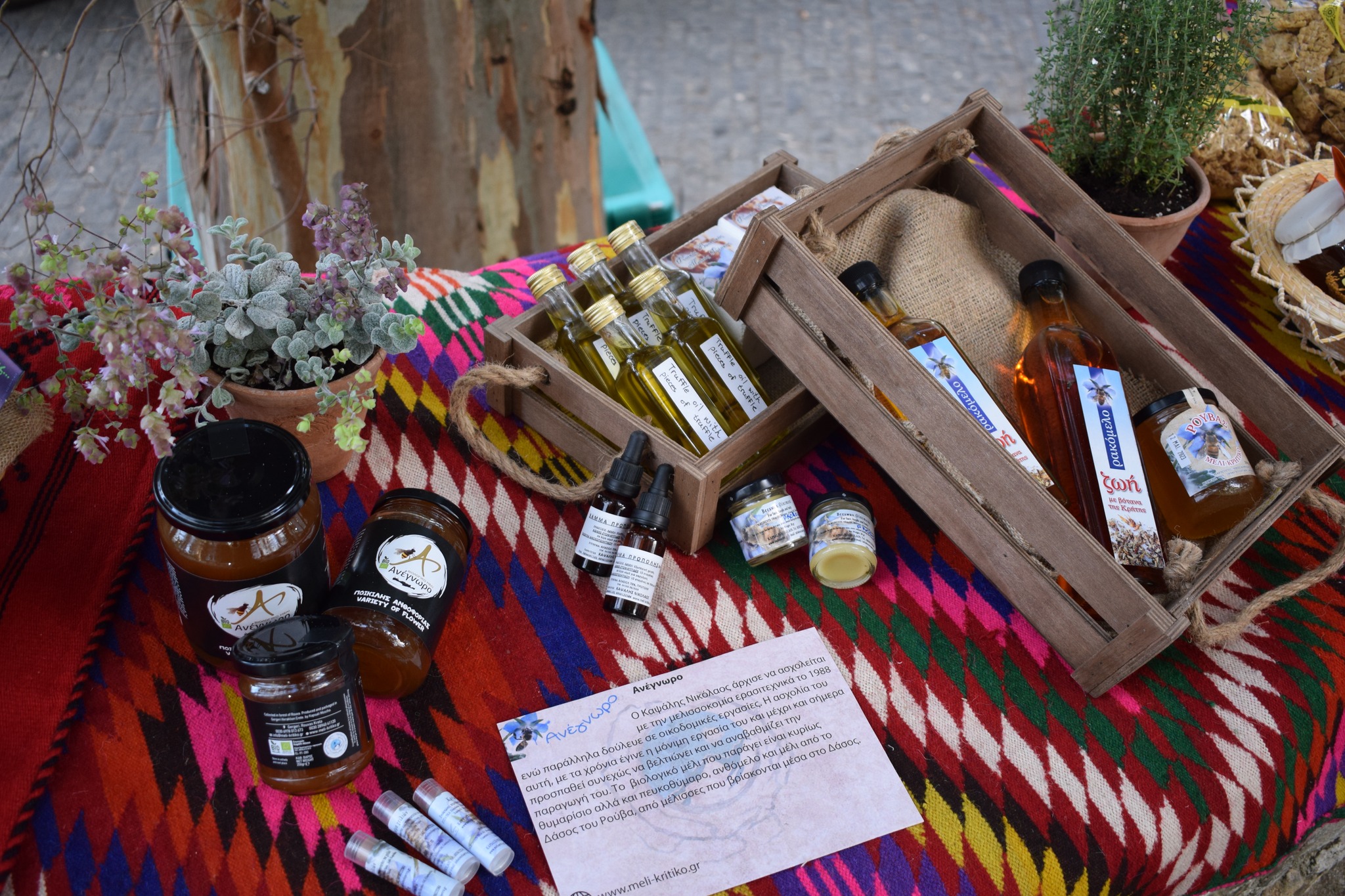 Athos Workshop, Cretanthos, Cretan Herbs, Γαλακτοκομικά προϊόντα «Γογιόνης», Γυναικείος Συνεταιρισμός Γέργερης «Ιδαία Γη», Ομάδα Μελισσοπαραγωγών Γέργερης «Το Κονάκι», Μέλι «Ανέγνωρο», Οινοποιείο «Κουρκουλού».