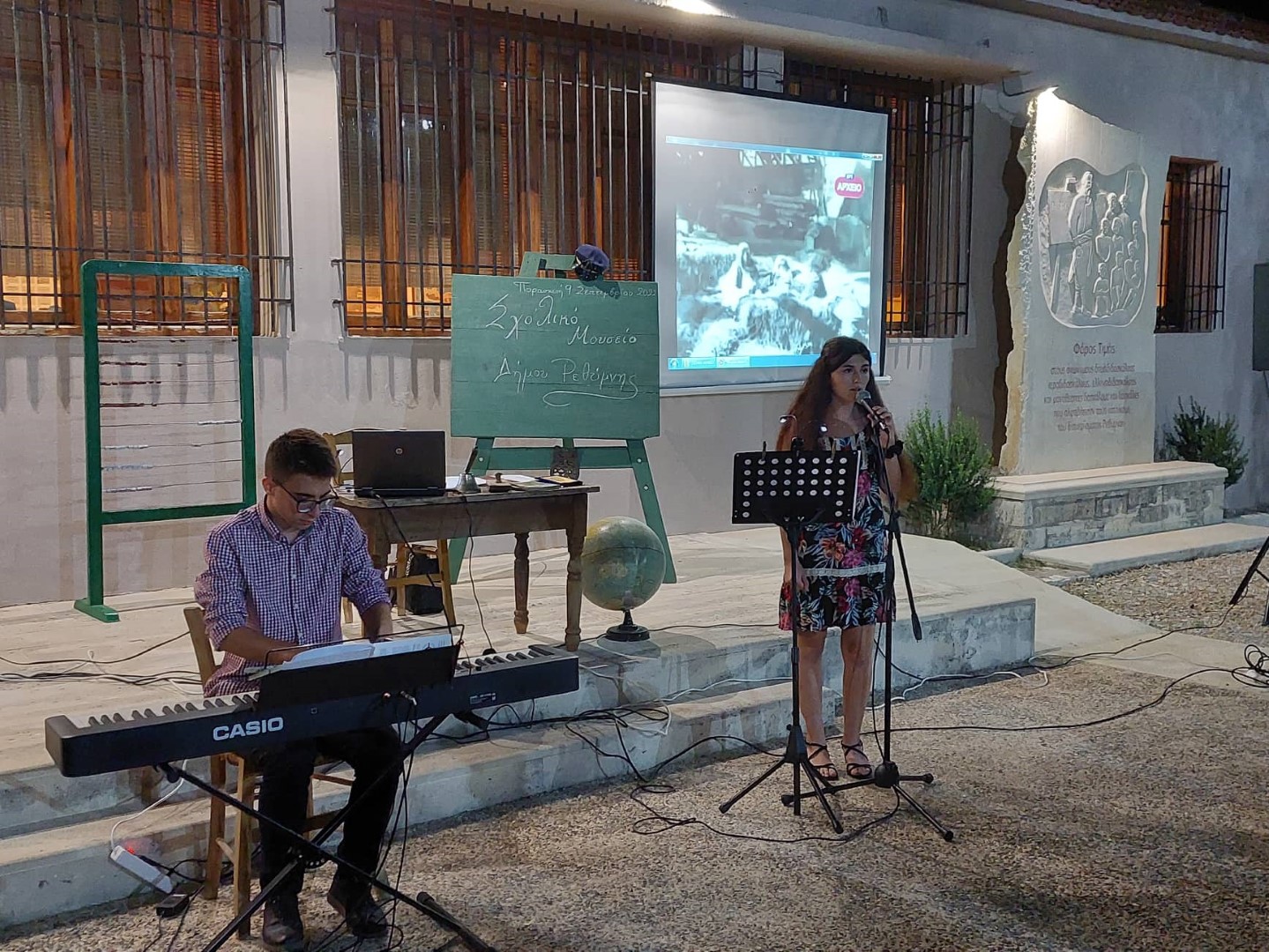 Την βραδιά πλαισίωσαν μουσικά δύο νέα παιδιά, η Μαργαρίτα Άντη, μαθήτρια Β΄ Λυκείου στο τραγούδι και ο Στέφανος Γεωργόπουλος, φοιτητής στη Νομική Σχολή του ΕΚΠΑ, στο πιάνο, με τραγούδια από τις αλησμόνητες πατρίδες.