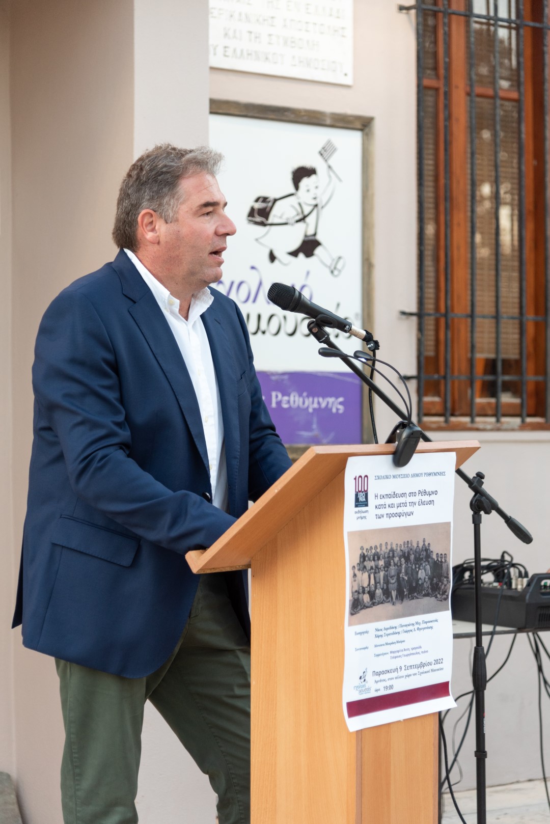 Μέσα σε κλίμα ιδιαίτερης συγκίνησης πραγματοποιήθηκε και φέτος η ετήσια θερινή εσπερίδα του Σχολικού Μουσείου του Δήμου Ρεθύμνης. Η φετινή εκδήλωση δεν θα μπορούσε παρά να αφορά στην συμπλήρωση των 100 χρόνων από τη Μικρασιατική Καταστροφή και τον ξεριζωμό των Ελλήνων, με ειδικότερο θέμα την εκπαίδευση των μικρών προσφυγόπουλων μετά την έλευση τους στο Ρέθυμνο.