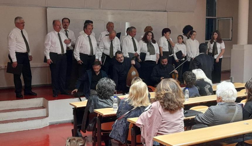 Ενθουσιάστηκαν καθηγητές, φοιτητές και συμπολίτες με την παρουσία της Χορωδίας Ρεθυμνίων Μικρασιατών στο αμφιθέατρο του τμήματος φιλολογίας της Φιλοσοφικής Σχολής Κρήτης, στο οποίο προσεκλήθησαν για να τραγουδήσουν και να μεταφέρουν το μπρίο και τον γλυκασμό της ‘Ιωνίας Μούσας’. Κατά το τέλος του διήμερου Συμποσίου (Τετάρτη-Πέμπτη 9 και 10 /11/2022) που οργάνωσε το Τμήμα Φιλολογίας σε συνεργασία με τον Δήμο Ρεθύμνης, και ήταν αφιερωμένο στην Επέτειο των 100 χρόνων από την Μικρασιατική Καταστροφή με τίτλο :‘1922-2022: ‘αναπαραστάσεις της Καταστροφής στον λόγο και στην τέχνη’ η Χορωδία έδωσε μουσική χροιά στις χρήσιμες και εξαίρετες διαλέξεις που προηγήθησαν. Οι ‘Ρεθύμνιοι Μικρασιάτες’ υπό τη διεύθυνση του γνωστού μουσικού και δασκάλου Βυζαντινής μουσικής κ Ανδρέα Γιακουμάκη με το επιτελείο του ( ‘Aρης Σισκάκης βιολί, Μιχάλης Κώτης ούτι, Παναγιώτης Σφακιανάκης τουμπελέκι), ερμήνευσαν επιτυχώς τα τραγούδια: Σμύρνη πατρίδα μου γλυκιά, Ελενάκι , Βασιλικός μυρίζει εδώ, Πάρε καρότσα κι έλα,Να ‘μουν στην Πόλη ένας πασάς, διαχέοντας κέφι και ζωντάνια στο κοινό και αποσπώντας το πιο θερμό χειροκρότημα. Ο ποιοτικός μπουφές που ακολούθησε ήταν το έναυσμα για να γνωριστούν καλύτερα ,’μεταξύ τυρού και αχλαδιού ‘οι χορωδοί με τους Πανεπιστημιακούς. Τα εύσημα όμως δεν ανήκουν μόνο στους Χορωδούς αλλά και στους αρμόδιους του Τμήματος Φιλολογίας όχι μόνο για την άψογη οργάνωση αλλά επειδή απέδειξαν ότι τιμούν την Ελληνική παράδοση και την Ιστορία.