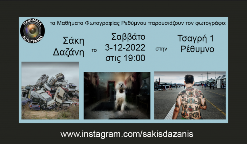 Φωτογραφίας Ρεθύμνου είναι ο Σάκης Δαζάνης για να μας παρουσιάσει την δουλειά του.