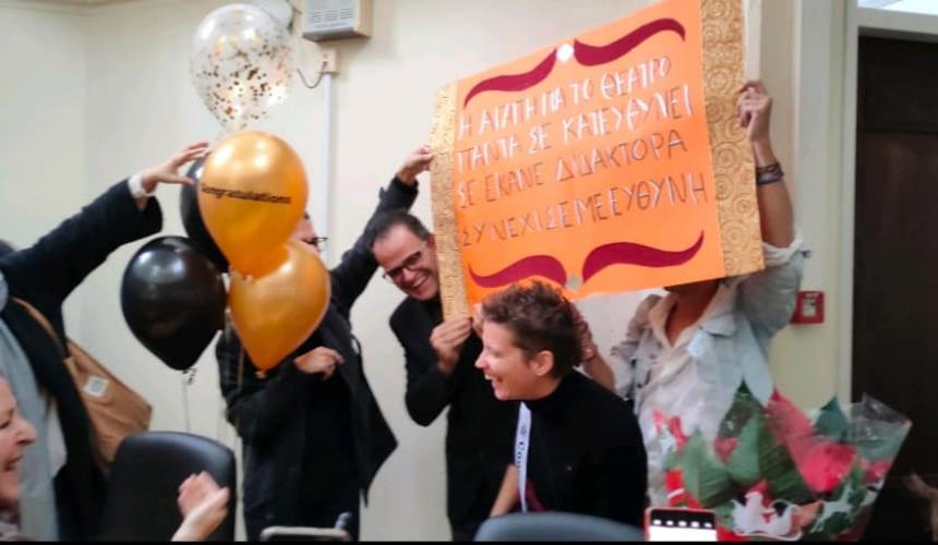 Ταυτόχρονα με τις πρόβες η ομάδα του Περίπλου γιόρτασε την επιτυχία ενός βασικού μέλους της ομάδας, της Άννας Τζανιδάκη, η οποία υποστήριξε επιτυχώς την διδακτορική της διατριβή την περασμένη Τετάρτη, με θέμα «Το θέατρο στο Ρέθυμνο τον 20ό αιώνα». Η μελέτη αυτή είναι πολύ σημαντική για την πόλη μας αλλά και για την ιστορία του θεάτρου της Ελλάδας γενικότερα. «Συγχαρητήρια Άννα μας!»
