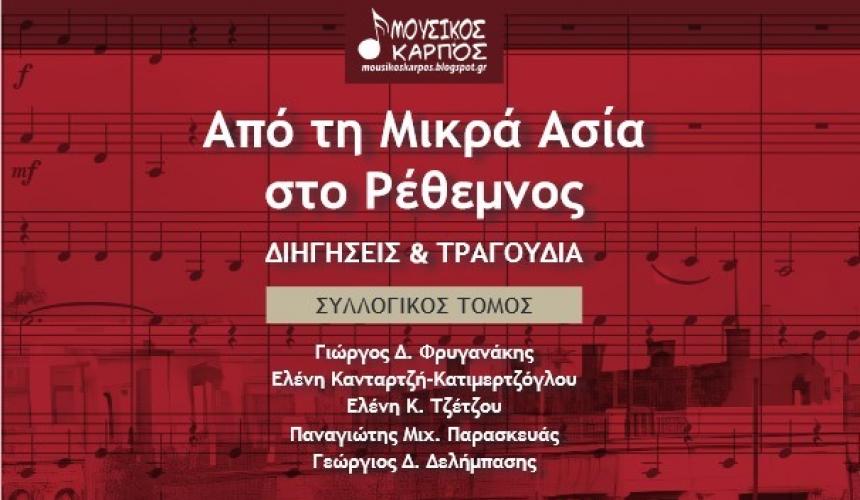 Η παρουσίασης του Συλλογικού Τόμου από τον Μουσικό Καρπό με τίτλο: «Από τη Μικρά Ασία στο Ρέθεμνος» θα πραγματοποιηθεί την Κυριακή 11 Δεκεμβρίου και ώρα 12:30, στην αίθουσα Παντελή Πρεβελάκη με ελεύθερη είσοδος για το κοινό. Οι παρευρισκόμενοι θα έχουν την ευκαιρία να ακούσουν ιστορίες Μικρασιατών προσφύγων 2ης και 3ης γενιάς, που οι προγονοί τους, εγκατέλειψαν τη γενέθλια γη για να εγκατασταθούν στο Ρέθυμνο, ενώ θ’ ακουστούν και μικρασιάτικα τραγούδια.