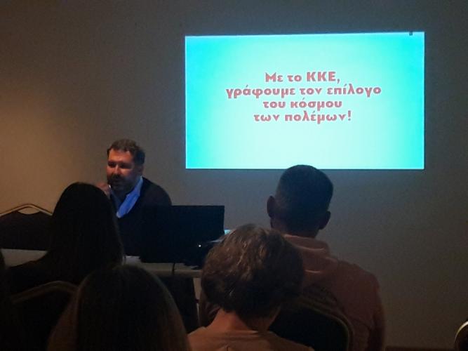(…) Βρισκόμαστε στην πρώτη γραμμή της μάχης για κάθε τι μικρό και μεγάλο, μάχη στην οποία καλούμε να συμπορευτεί ο λαός και η νεολαία με το ΚΚΕ και την ΚΝΕ, για μια ζωή χωρίς πολέμους και εκμετάλλευση, με όπλο την επαναστατική στρατηγική του ΚΚΕ.»
