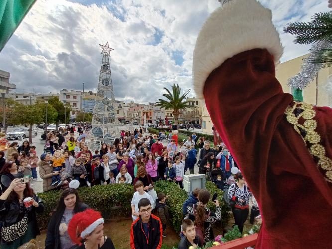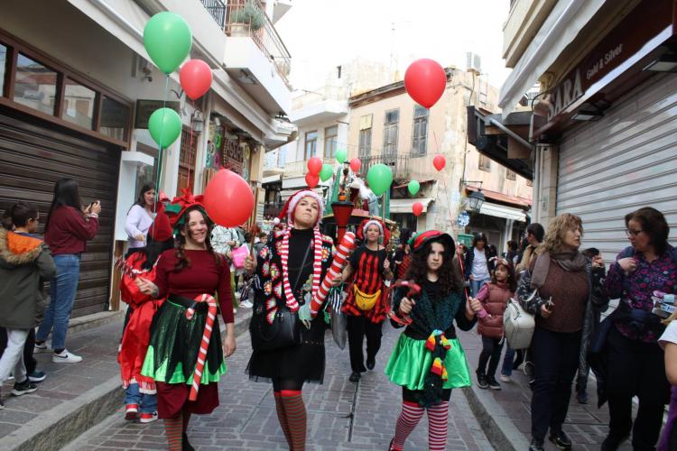 Ο Άγιος Βασίλης ανεβασμένος στο υπερυψωμένο, ειδικά διαμορφωμένο άρμα μοίρασε δώρα (προσφορά του συλλόγου) σε περαστικούς, μαγαζιά και κυρίως στους μικρούς και μεγάλους φίλους του που τον ακολουθούσαν σε όλη τη διαδρομή. Παρέα του τα ξωτικά, τα οποία προπορεύονταν και καλούσαν τον κόσμο σε μια ξεχωριστή γιορτή!