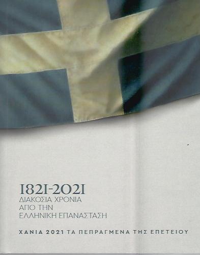 Πολυτελέστερη, εκτενέστερη και περιεκτικότερη έκδοση είναι ασφαλώς, Τα Πεπραγμένα της επετείου 1821-2021 στα Χανιά, Διακόσια χρόνια από την Ελληνική Επανάσταση. Πραγματικά αυτήν την περίοδο πραγματοποιήθηκαν πλήθος εκδηλώσεων στο Νομό Χανίων, από πολλούς φορείς, δια ζώσης ή διαδικτυακά. Διοργανώθηκαν διαλέξεις, συνέδρια, εκθέσεις, γράφτηκαν βιβλία, πραγματοποιήθηκαν συναυλίες, αναδείχτηκαν γνωστές και άγνωστες σελίδες της ιστορίας μας. Όλη η Περιφερειακή Ενότητα βρέθηκε σε ένα δημιουργικό αναβρασμό, με την αξιόλογη συνδρομή πολλών φορέων και τη συγκινητική συμμετοχή των Σχολείων. Συγκεντρώθηκε έτσι ένας μεγάλος όγκος υλικού που με τη σειρά του δημιούργησε τη σκέψη να καταγραφεί ως παρακαταθήκη. Τιμές και Μνήμες για τα 200 χρόνια από την Επανάσταση του 1821. Το αποτέλεσμα είναι το αξιοπρεπές από κάθε άποψη λεύκωμα, ένα ταξίδι, στα χρόνια που ανέτειλε η απαρχή του νεότερου Ελληνικού Κράτους, ταξίδι γνώσης και κινητοποίησης συναισθημάτων, αλλά και αναστοχασμού. Οι φωτό των εκδηλώσεων του λευκώματος παραχωρήθηκαν από τους Δήμους και τους Φορείς που παρουσιάζονται στις σελίδες του και ολοκληρώνουν την αισθητική τελειότητά του. Σίγουρα θα πάρει στη σχετική βιβλιογραφία τη θέση που του αξίζει.