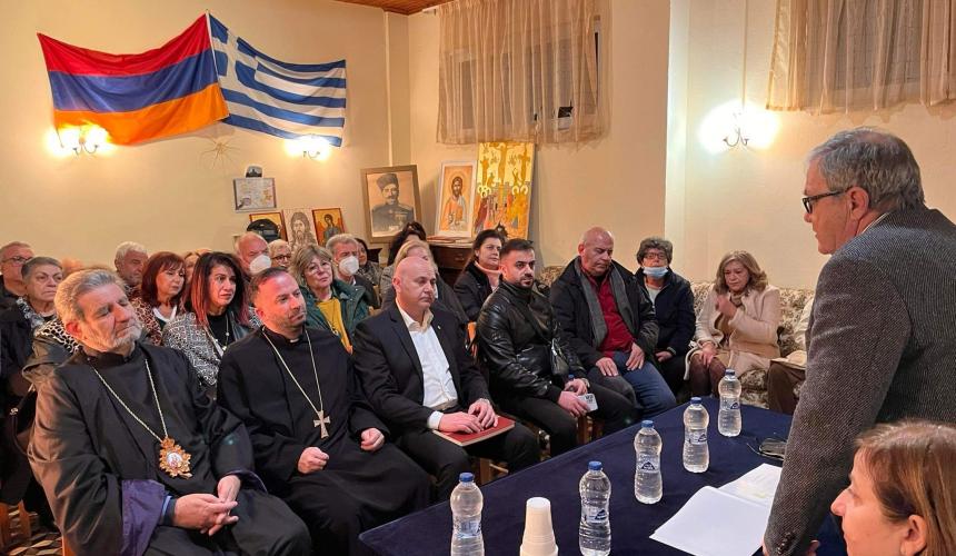 Το περασμένο Σάββατο 14 Ιανουαρίου 2023 στον ιερό ναό της Ορθόδοξης Αποστολικής εκκλησίας του Αγίου Ιωάννου του Προδρόμου στο Ηράκλειο, παρουσιάσαμε με την κυρία Τακουΐ Βακιρτιζιάν και τον κύριο Δαβίδ Μοφσεσιάν, το Βιβλίο - Λεύκωμα μου ΑΡΜΕΝΙΩΝ ΝΟΣΤΟΣ ΕΚΑΤΟ ΧΡΟΝΙΑ ΜΕΤΑ στην Αρμενική Κοινότητα Ηρακλείου Κρήτης. Η παρουσίαση έγινε σε μία παρακείμενη του ναού αίθουσα υποδοχής, και το κοινό το οποίο την παρακολούθησε ήταν κυρίως απόγονοι των Αρμενίων οι οποίοι έφτασαν στο Ηράκλειο μετά την καταστροφή της Σμύρνης και του Μικρασιατικού Ελληνισμού και βεβαίως των Αρμενίων οι οποίοι ζούσαν στις ίδιες περιοχές.
