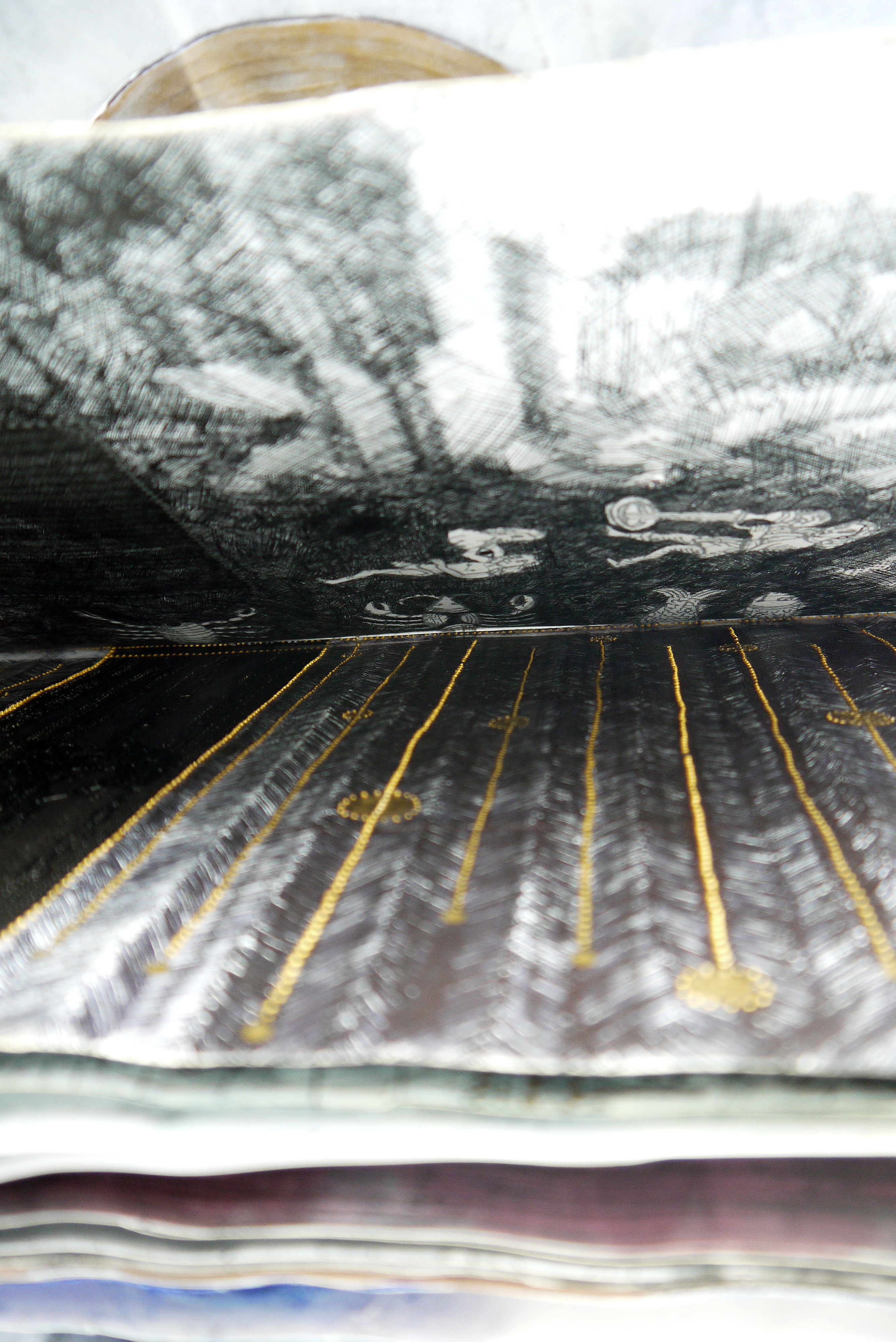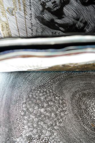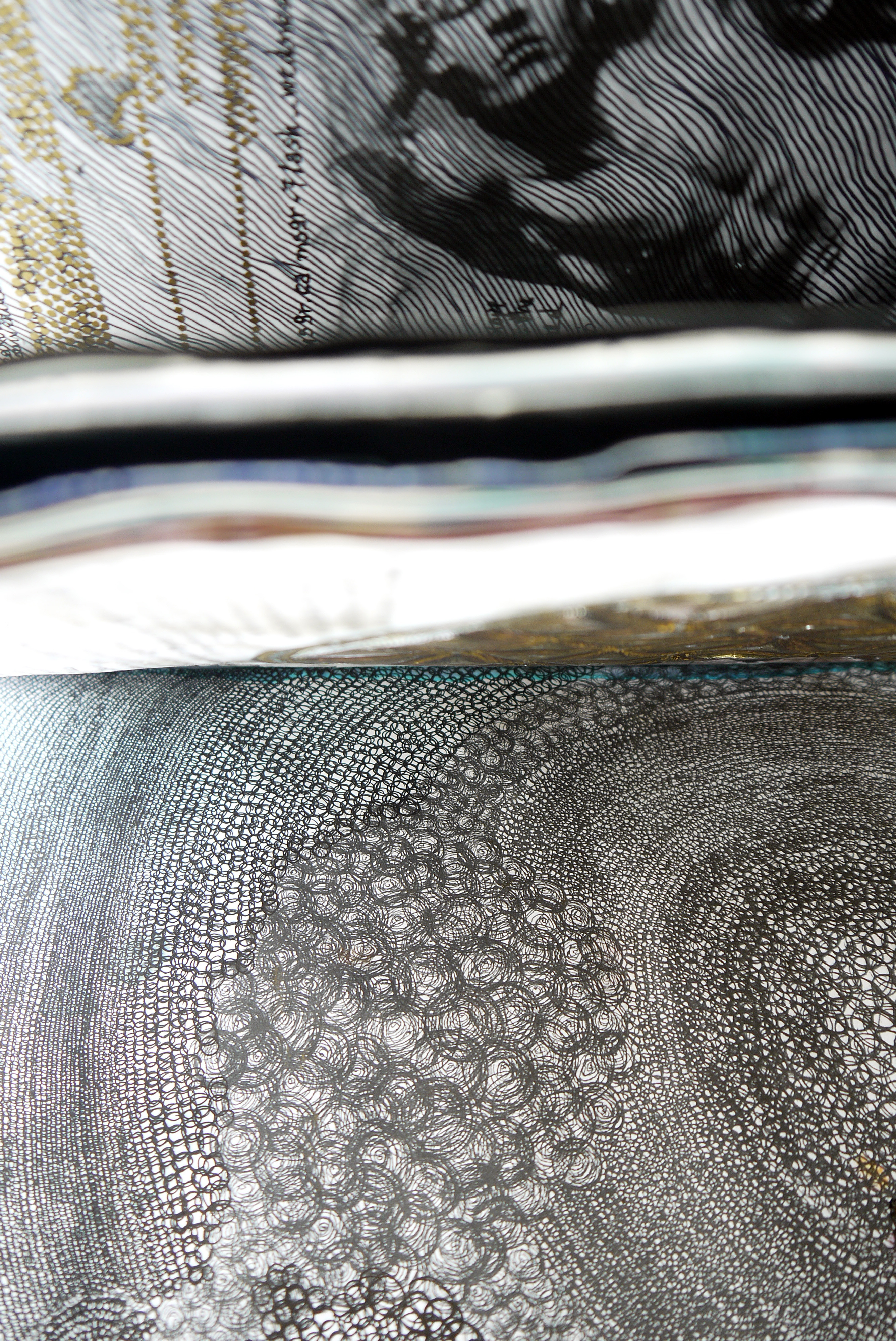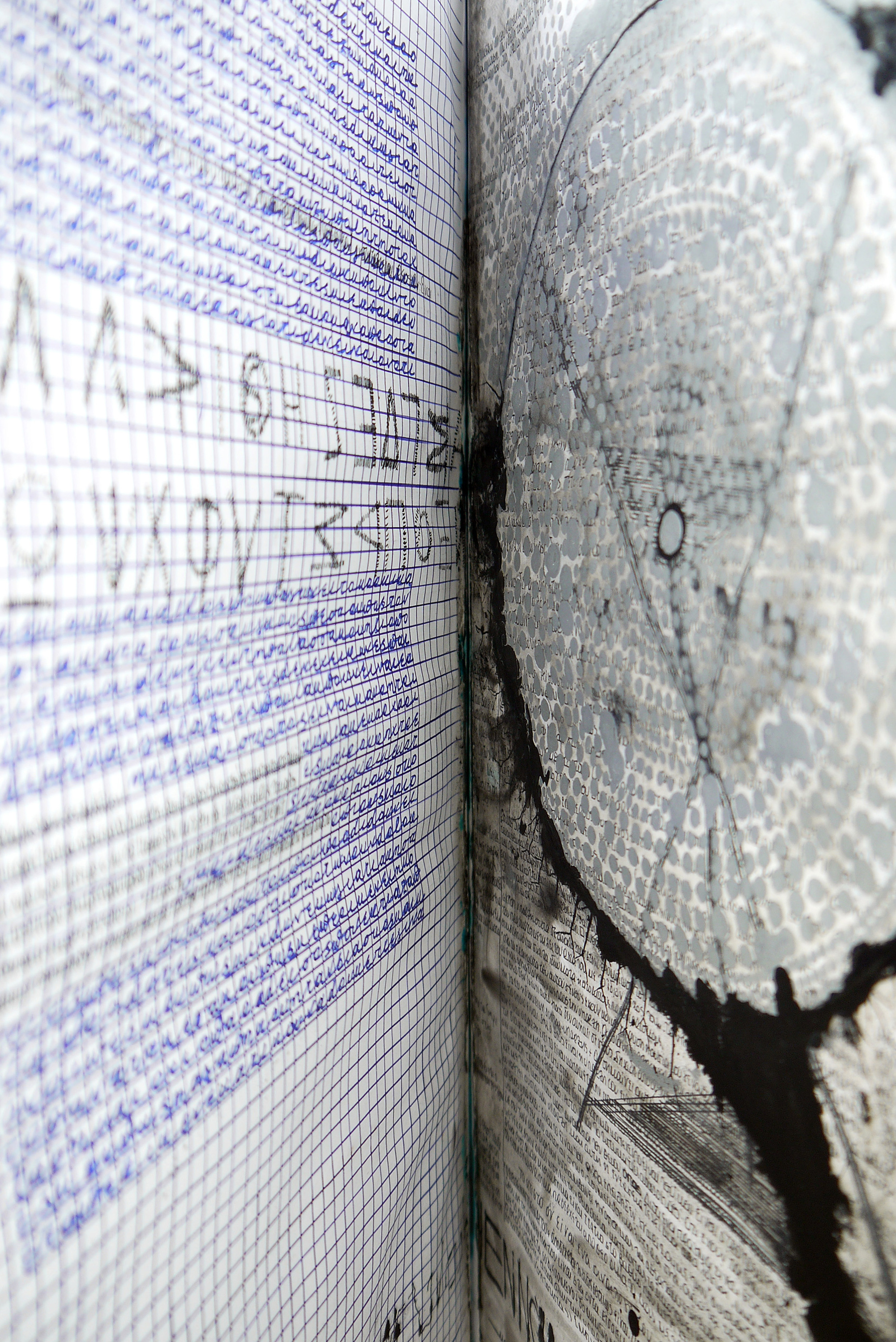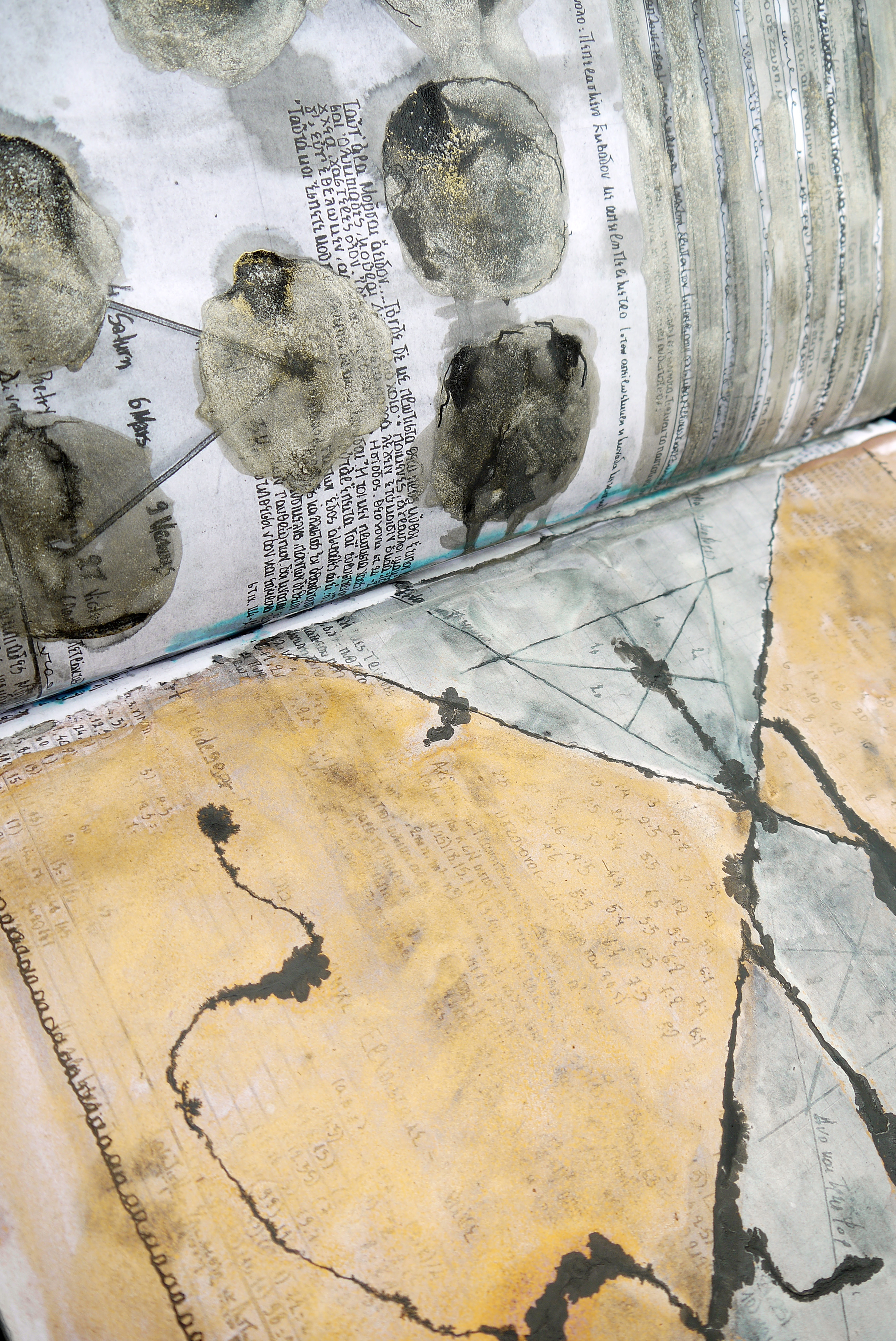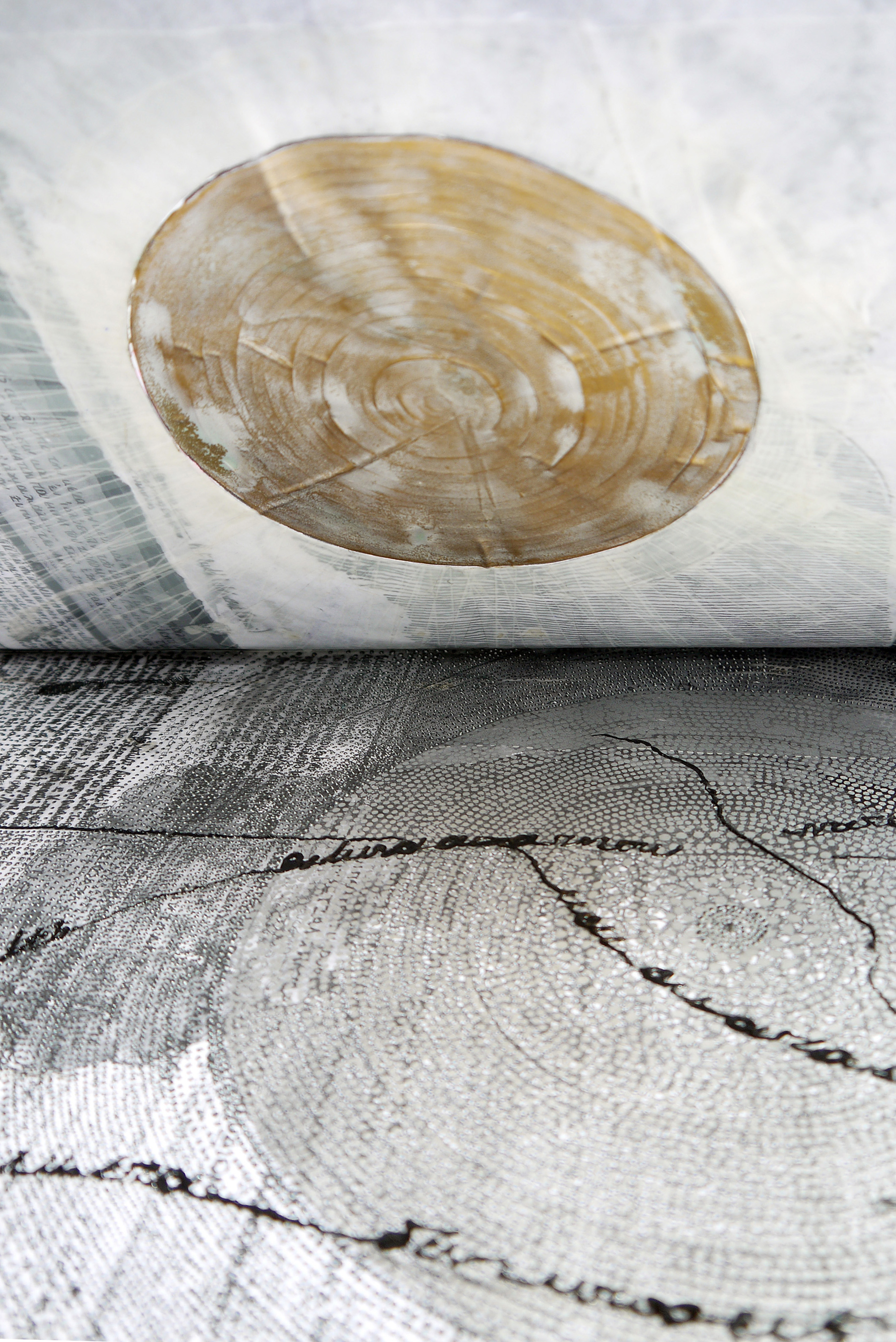 Είναι έργο μεικτής τεχνικής που η καλλιτέχνης αντιμετώπισε με γλυπτική διάθεση ως προς την τρίτη διάσταση του φύλλου. Έτσι κάθε φύλλο αποτελεί αυτόνομο έργο διπλής μετωπικότητας στο οποίο ο γραπτός λόγος λειτουργεί ως υλικό μέσο και αναπόσπαστο μέρος της σύνθεσης. Το έργο αναπτύχθηκε σε μεγεθυμένη φωτοαντιγραφική αναπαραγωγή του πρώτου και παγιώνει ένα τρόπο εργασίας που εκπορεύεται από τη θεώρηση της για το «υπάρχειν στον κόσμο».