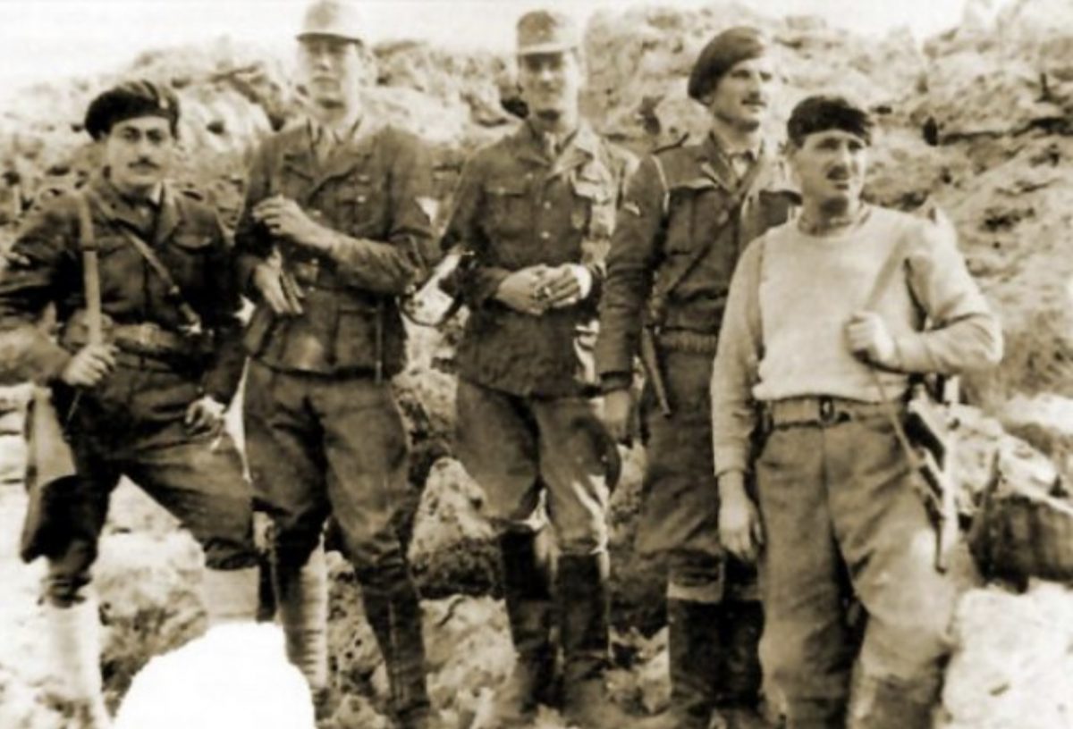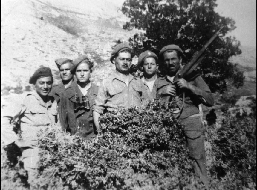 Στο πίσω μέρος της η φωτογραφία (φωτ.1) αναγράφει «στου παπά το Λάκκο 1943». Πρόκειται για ένα μικρό οροπέδιο στο Ψηλορείτη με μιτάτα ανάμεσα σε πρίνους και χαμηλή βλάστηση, σε υψόμετρο περίπου 1500 μέτρων, ακριβώς στα μέρη πάνω από το Φουρφουρά. Σε κοντινή απόσταση από το σημείο βρίσκονται σπηλιές (Καχτάκι, Καλλέργη σπήλιος) όπου στην Κατοχή λειτούργησε ο ασύρματος. Φωτογραφίζονται μέλη της αντάρτικης ομάδας από το Φουρφουρά Αμαρίου, η οποία ανέγραφε στα πηλίκια και στους μπερέδες της τα αρχικά Ε.Ο.Ψ., δηλαδή Εθνική Οργάνωση Ψηλορείτης. Οι ίδιες οι γυναίκες του χωριού τα είχαν ράψει πάνω σ’ αυτά. Στη φωτογραφία εικονίζονται και οι πρωταγωνιστές της δικής μας ιστορίας. Οι τρεις τους συναντήθηκαν εκεί στο βουνό και συνδέθηκαν στον αγώνα για την Ελευθερία με δεσμά που διατηρήθηκαν σε όλη τους τη ζωή. Η φωτογραφία είναι τραβηγμένη κατά τους θερινούς μήνες, αφού δε διακρίνεται χιόνι. Η ομάδα είναι εφοδιασμένη με συμμαχικό εξοπλισμό, στολές-κυάλια, καθώς έπρεπε να δείχνει και στην εμφάνιση ότι επρόκειτο για ένοπλο σώμα και όχι για άτακτους πολίτες, ώστε να αποφευχθούν αντίποινα και συνέπειες στον άμαχο πληθυσμό για εμπλοκή του σε πολεμικές δράσεις.[11]