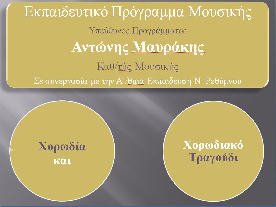 Επίσης οι μαθητές θα ενημερωθούν για τη Συγκρότηση των χορωδιών, τον Διαχωρισμό των φωνών και τη Διδασκαλία του χορωδιακού τραγουδιού.