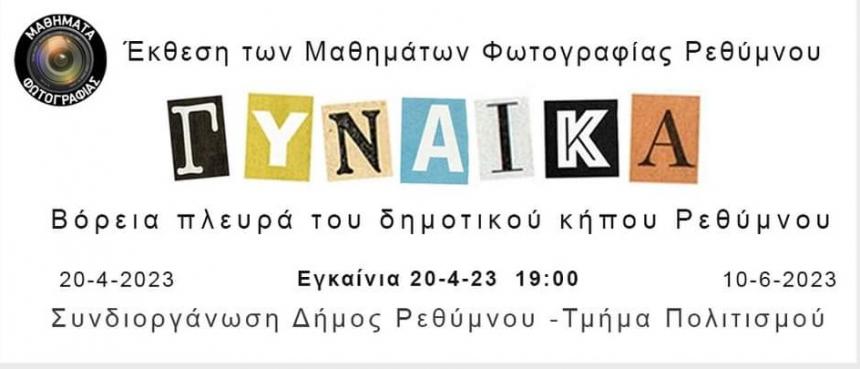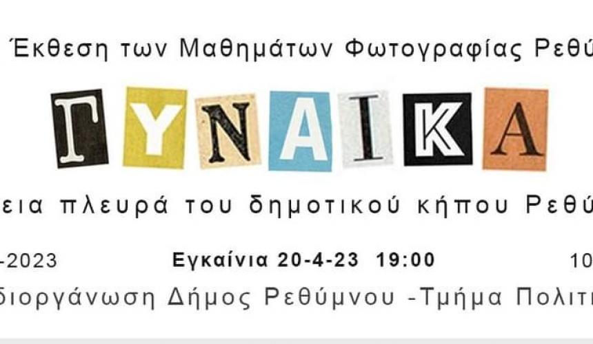 Τα Μαθήματα Φωτογραφίας Ρεθύμνου σε συνδιοργάνωση με το Δήμο Ρεθύμνου-Τμήμα Πολιτισμού παρουσιάζουν την έκθεση φωτογραφίας με θέμα "Γυναίκα" στη εξωτερική πλευρά του δημοτικού κήπου Ρεθύμνου.