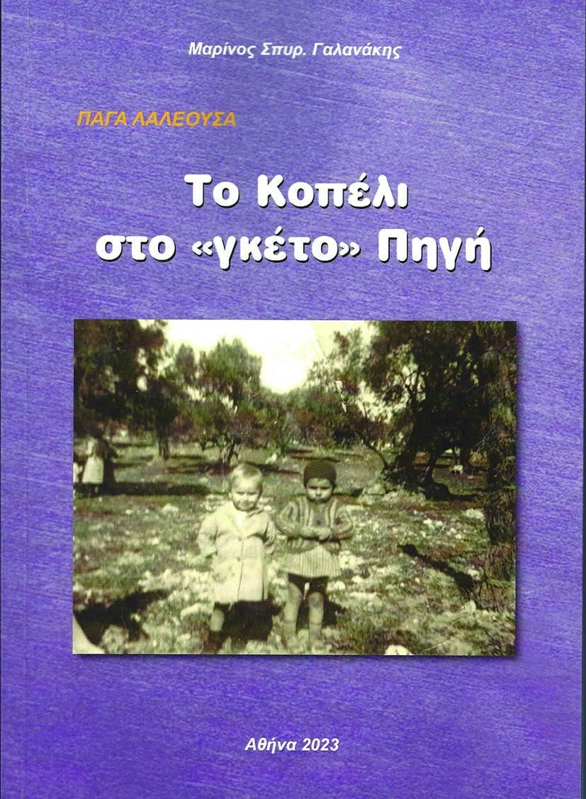 Γενικά ο Μαρίνος Σπυρ. Γαλανάκης, αναφέρεται στο βιβλίο αυτό στα γεγονότα που συνέβησαν, όταν ήταν παιδί στον ευρύτερο χώρο τηςΠηγής, και διαμόρφωσαν τον χαρακτήρα του ή επέδρασαν θετικά ή αρνητικά στην υγεία,τη σωματική και πνευματική ανάπτυξή του, μέχρι την ένταξή του στην κοινωνία. Μαρτυρίες σημαντικές είναι οι φωτογραφίες, κυρίως οι οικογενειακές, φιλικές, τοπικές και προσωπικές, καθώς και οι προερχόμενες από το διαδίκτυο. Κοινωνικά γεγονότα, επίσης, που συνέβησαν στην Πηγή αυτήν την περίοδο εμπλουτίζουν το βιβλίο και απαντούν σε απορίες που εκφράζονται από τους αναγνώστες του. Τα βιώματα του Μαρίνου Σπυρ. Γαλανάκη είναι τόσο έντονα όσο και οι εικόνες που περιγράφει στην περιοχή του χωριού του, την Πηγή, στο «γκέτο» της, που έζησε ως μικρό παιδί, κοπέλι, εκείνα τα δύσκολα χρόνια.