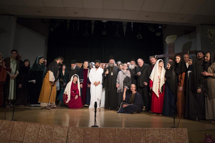 Ο Γιώργος Καλογεράκης ευχαρίστησε τον Δεσπότη της πόλεώς μας, τους ιερείς και το κοινό για την προσέλευση και το ζεστό χειροκρότημα, καθώς και τα σαράντα άτομα της θεατρικής ομάδος για τη συμβολή τους στη μοναδική παράσταση.