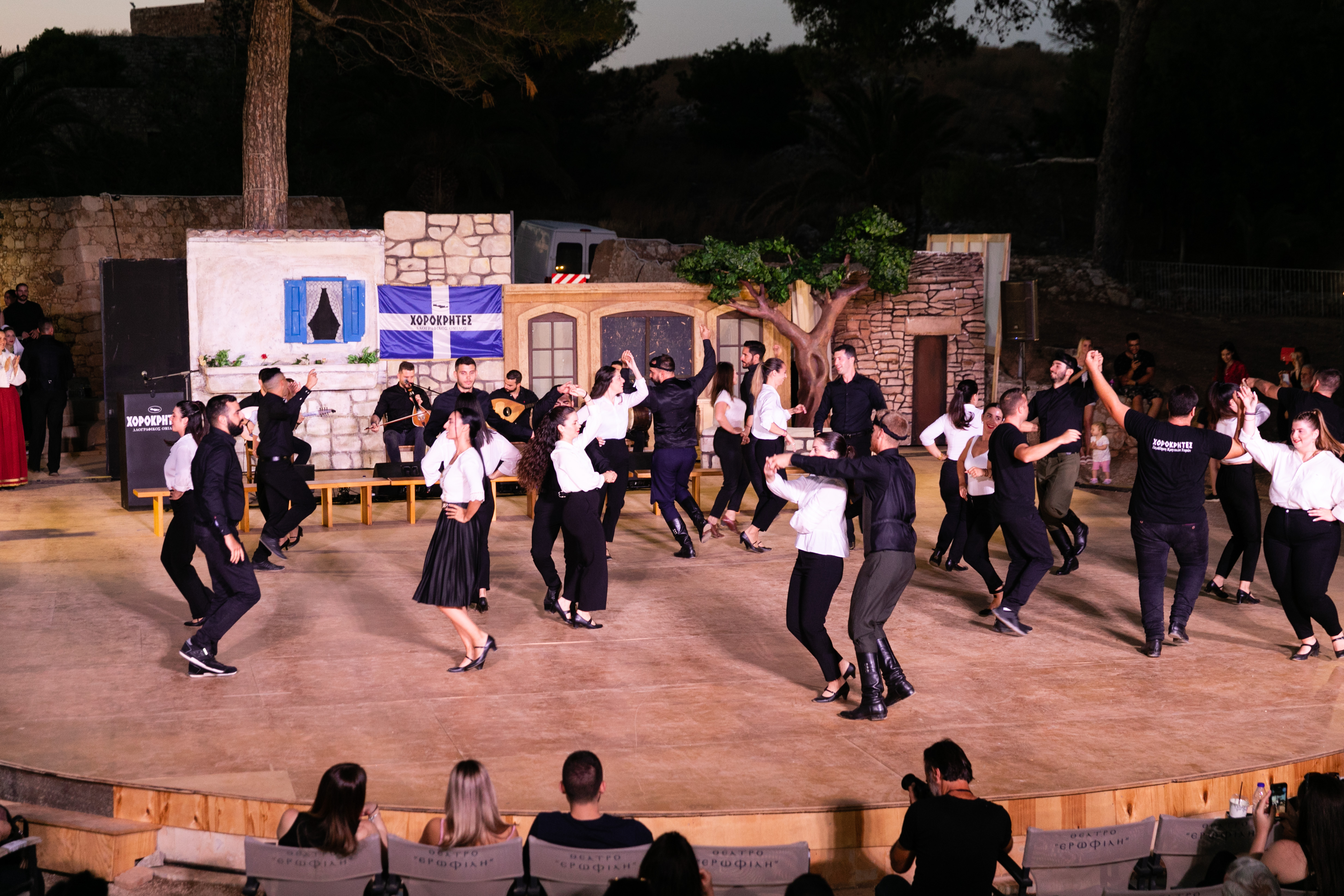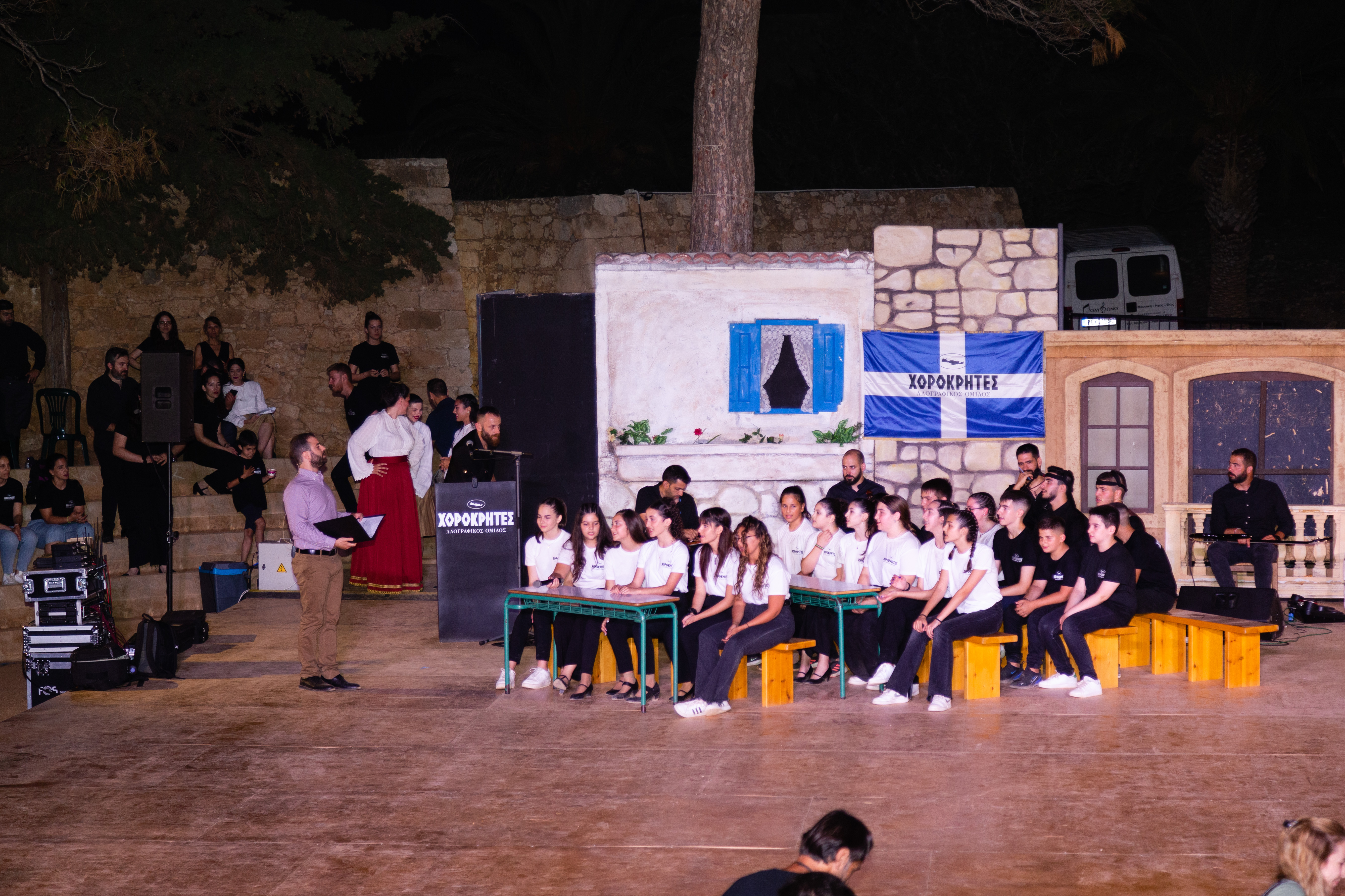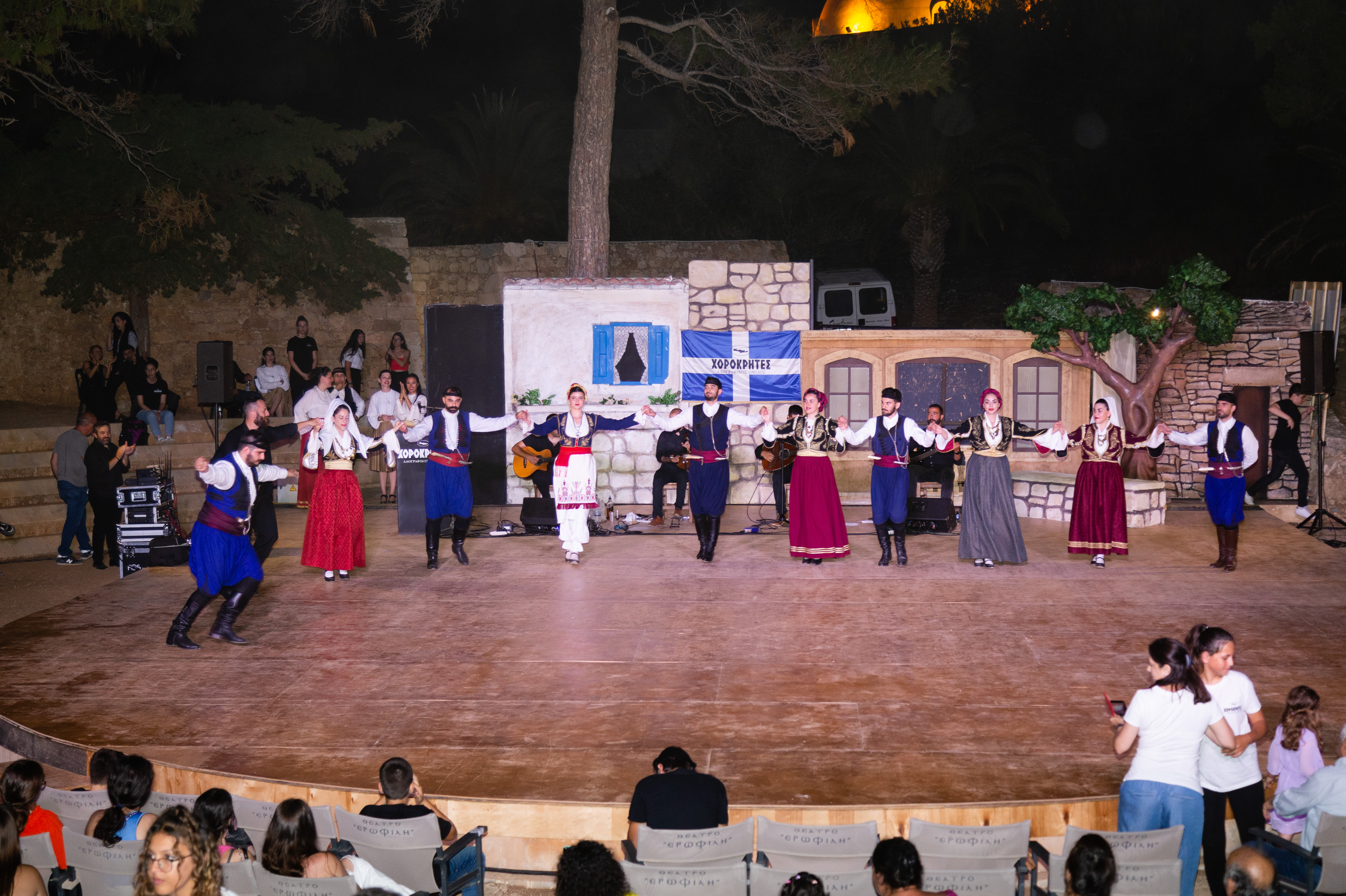 Με απόλυτη επιτυχία στέφθηκε το διήμερο της Τετάρτη 21 και της Πέμπτη 22 Ιουνίου 2023 η ετήσια μουσικοθεατρική εκδήλωση του Λαογραφικού Ομίλου "ΧΟΡΟΚΡΗΤΕΣ"στο θέατρο "Ερωφίλη" του φρουρίου της Φορτέτζας,με αφορμή τη λήξη των μαθημάτων των τμημάτων εκμάθησης κρητικών παραδοσιακών χορών.Την Τετάρτη το βράδυ,την τιμητική τους είχαν τα παιδικά τμήματα του Ομίλου,υπο τους κρητικούς ήχους του Μιχάλη Σταυρουλάκη και του συγκροτήματος του, που παρουσίασαν στο κατάμεστο θέατρο "Ερωφίλη", τις χορευτικές τους ικανότητες,με ζωντάνια, όρεξη και ενθουσιασμό.Την Πέμπτη,την σκυτάλη πήραν τα τμήματα των ενηλίκων με τη μουσική συνοδεία του Νίκου Καρκανη και του συγκροτήματος του.Η αρχή έγινε με την απόδοση ριζιτικου τραγουδιού απο την νεοσύστατη Ριζιτικη Ομάδα των "ΧΟΡΟΚΡΗΤΩΝ", ενώ γυναίκες και άνδρες του ομίλου,με παραδοσιακές φορεσιές και ανάλογες ενδυμασίες σε άψογους σχηματισμούς, έδωσαν τον καλύτερο τους εαυτό, τιμώντας με αυτόν τον τρόπο τους εκατοντάδες παρευρισκόμενους που θέλησαν να δουν απο κοντά τους "ΧΟΡΟΚΡΗΤΕΣ".Το πρόγραμμα της εκδήλωσης του Ομίλου δεν περιορίστηκε στο μουσικοχορευτικό κομμάτι, αλλά εμπλουτίστηκε με την παρουσίαση θεατρικού δρωμενου, προσαρμοσμένο στα κρητικά χαρακτηριστικα, ενώ στη συνέχεια, επιδόθηκε τιμητική πλακέτα στη Δημιουργική Ομάδα Μαργαριτων "Boudalia"για την προσφορά της στα θεατρικά πράγματα του τόπου.Την οργάνωση,παρουσίαση και συντονισμό της εκδήλωσης είχαν οι χοροδιδασκαλοι του Ομίλου, Μανώλης Καπαρος και Μαρία Τσαγλιωτη, πλαισιωμένοι απο τους υπόλοιπους δασκάλους,χορευτές και μαθητές του Ομίλου.Το κοινό καταχειροκροτησε τους μικρούς και μεγάλους μαθητές του Ομίλου, επιβεβαιώνοντας και επιβραβεύοντας με αυτόν το τρόπο το εξαιρετικό θέαμα που παρακολούθησαν, αποτέλεσμα συλλογικής δουλειάς,ζήλου, συνεργασίας, σεβασμού και αγάπης προς της Κρήτη,και την κρητική παράδοση, αξίες που διδάσκονται στους "ΧΟΡΟΚΡΗΤΕΣ".