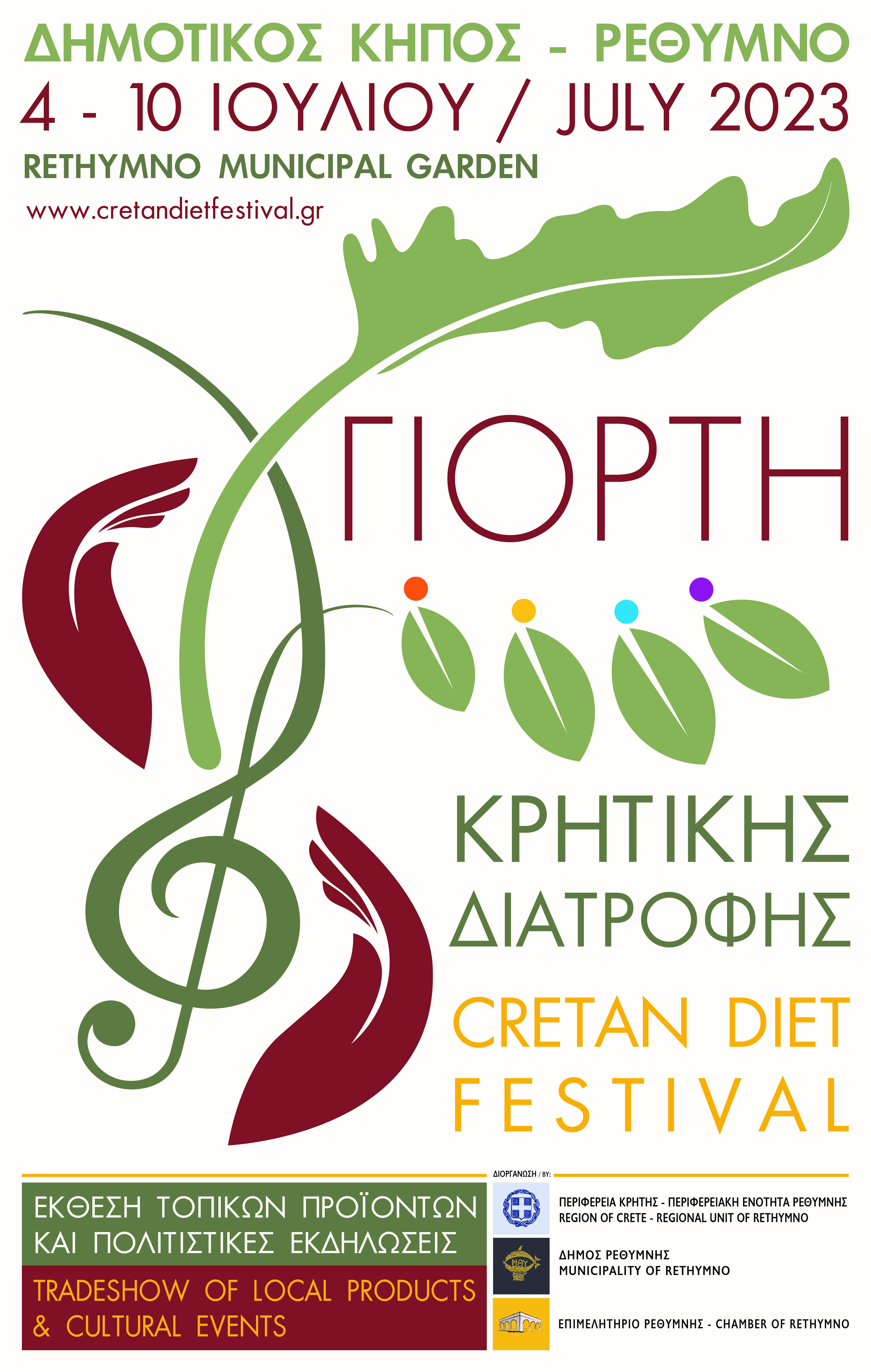 21:00 – 21:30 Κρητική μουσική και χοροί από τον παραδοσιακό σύλλογο «ΧΟΡΟΚΡΗΤΕΣ» και το μουσικό συγκρότημα του Πέτρου Μαρούλη.