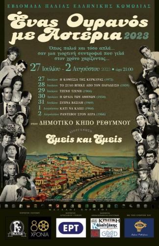Η φετινή εβδομάδα παλιάς ελληνικής κωμωδίας θα φιλοξενηθεί για πρώτη φορά στον Δημοτικό Κήπο Ρεθύμνου και την διοργανώσει στηρίζουν ο Δήμος Ρεθύμνου, η ΕΡΤ και η Finos Film.