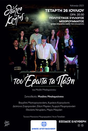 Τετάρτη 9 πολιτιστικός σύλλογος Μιξορρουματος. ωρα έναρξης 21.00 . Κρητικό συγκρότημα Πέτρου Μαρούλη.
