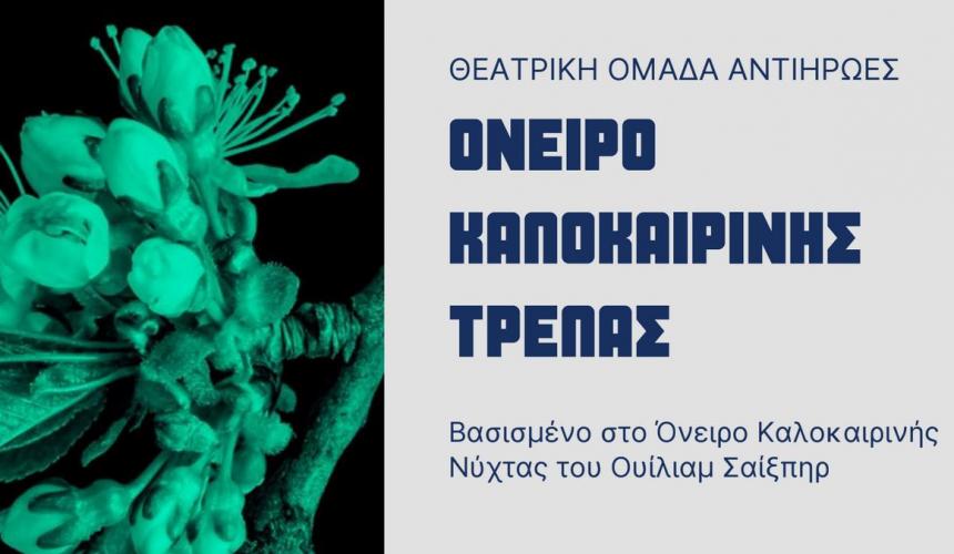 Ο Δήμος Αμαρίου σε συνεργασία με τη Θεατρική ομάδα ΑμεΑ ΑΝΤΙΗΡΩΕΣ παρουσιάζει την Τρίτη 25 Ιουλίου 2023 και ώρα 21:00 στο Δημοτικό Θέατρο Αποστόλων, το «Όνειρο καλοκαιρινής τρέλας» σε σκηνοθεσία Κωνσταντίνας Γιασεμίδου και Γιάννη Μπλέτα