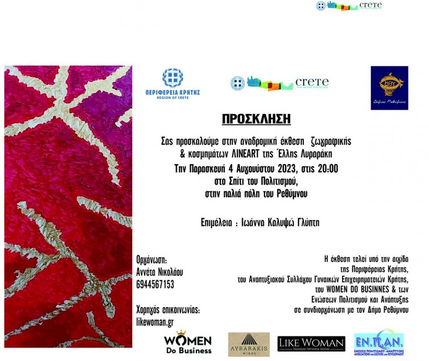 Υπό Την Αιγίδα: της Περιφέρειας Κρήτης, του Δήμου Ρεθύμνου, του Παγκόσμιου Φιλοσοφικού Φόρου, των Ενώσεων Πολιτισμού και Ανάπτυξης, του Αναπτυξιακού Συλλόγου Γυναικών Κρήτης, του «women do business».