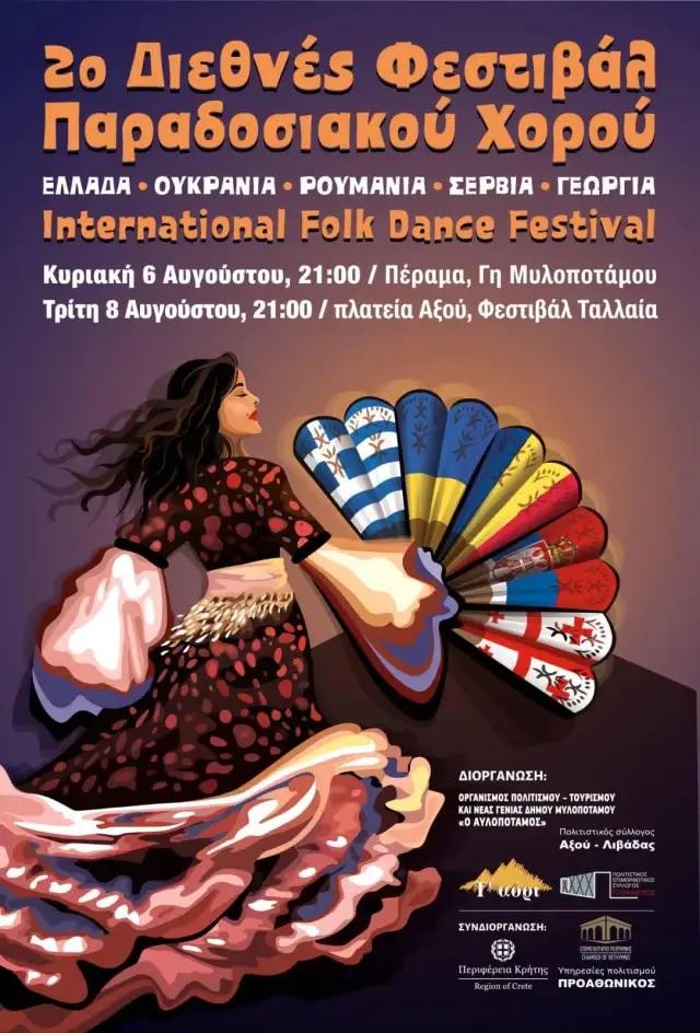 Ξεκινάει την Κυριακή 06 Αυγούστου 2023 και ώρα 9.30 μ.μ. στον Μυλοπόταμο, το 2ο Διεθνές Φεστιβάλ Παραδοσιακών χορών, με την στήριξη της Περιφέρειας Κρήτης.