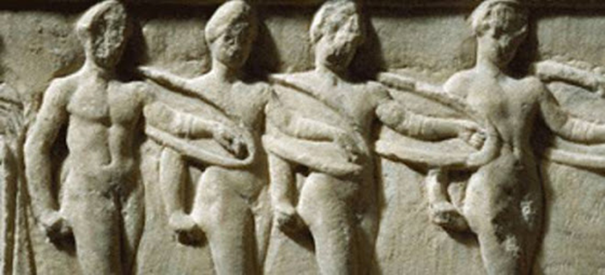Σε όλο τον ελληνικό κόσμο, η αποφασιστική μετάβαση από την παιδική στην ανδρική ηλικία γινόταν μέσω της πολεμικής εκπαίδευσης, στην οποία σημαντική θέση κατείχε ο πυρρίχειος χορός. Ο Έκτωρ καυχιέται για τον τρόπο που χειρίζεται τα όπλα. Ανάμεσα στις υποχρεώσεις των νεαρών ήταν η εκτέλεση του πυρρίχειου, ενός πολεμικού χορού με όπλα, κατά τη διάρκεια του οποίου ο έφηβος κρινόταν για την ικανότητά του στον χειρισμό των όπλων που του πρόσφερε η πολιτεία. Πυρρίχειο χόρεψε και η Αθηνά, όταν νίκησε τους Τιτάνες. Σχέσεις, ωστόσο, με τα άρματα είχαν και οι άλλοι θεοί: οι Κύκλωπες που παρείχαν στον Δία τα όπλα για την πρώτη πολεμική πράξη του, η Γαία που έδωσε στον Κρόνο το δρεπάνι, ο Άρης και η Άρτεμις. Συνεπώς, τα όπλα, έτσι που εμπλέκονται από την αρχή στους κοσμογονικούς μύθους των Ελλήνων, απέκτησαν τη θέση τους σε τελετουργικά χορικά δρώμενα. Μέσω αυτών προστατεύεται και ο ιερός τόπος, στον οποίο διεξάγεται ο χορός. Ένας τέτοιος ιερός τόπος είναι μεταφορικά και η ίδια η πόλις, την οποία καλούνται να υπερασπίζονται οι έφηβοι, αφού κατανοήσουν τον ρυθμό της λειτουργίας της.