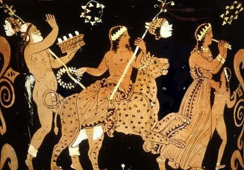Ας σταθούμε όμως στον Διόνυσο. Ο Διόνυσος φέρνει σε επαφή την ύπαρξή μας με τα δυσθεώρητα βάθη της μέσω των εκστατικών, πέρα από τη λογική, χορών. Οι χορευτές που έπαιρναν μέρος σε αυτούς βρίσκονταν σε έκρυθμη ψυχική κατάσταση –ένθεοι-, εξαιτίας κάποιου ερεθίσματος: η φωνή του Διονύσου ή το μούγκρισμα του ταύρου, του ιερού ζώου του Διονύσου στις Βάκχες, αλλά και από τα τύμπανα και τους αυλούς. Όσες μέρες ή ώρες διαρκούσε ο εκστατικός χορός, οι συμμετέχοντες εκτονώνονταν και απελευθερώνονταν από φοβίες και άγχη. Οι χοροί, δηλαδή, λειτουργούσαν θεραπευτικά, φέρνοντας τους χορευτές στα όριά τους. Στους μανιώδεις χορούς εντάσσεται και η Θερμαστρίς, ένας χορός, στον οποίο οι χορευτές πηδάνε ψηλά σταυρώνοντας τα πόδια στον αέρα, όπως περίπου γίνεται και με τον μαλεβυζιώτη ή τον ηρακλειώτικο πηδηχτό.