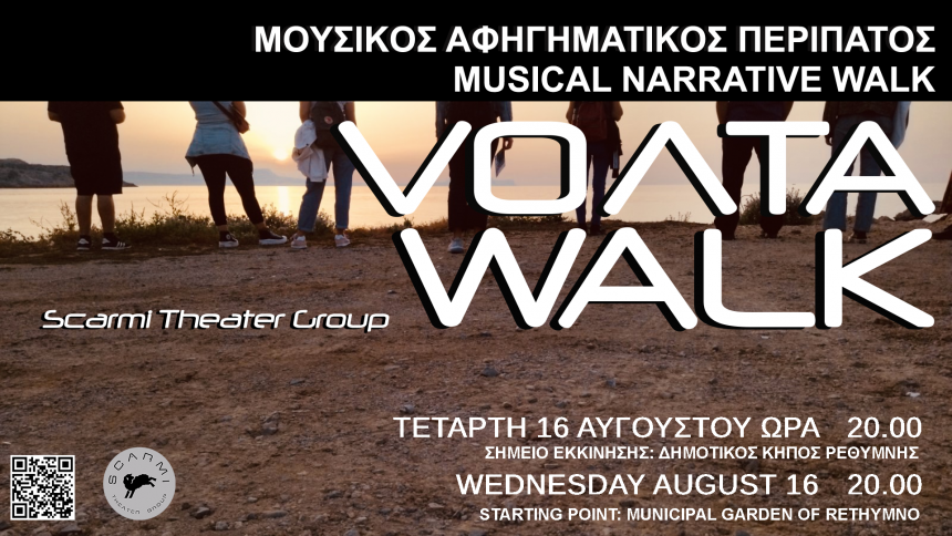 Με βάση το Ρέθυμνο Κρήτης παρουσιάζει έναν μουσικό αφηγηματικό περίπατο με τη χρήση ακουστικών κεφαλής, βασισμένο στον ελεύθερο πειραματισμό μέσω της θεατρικής αφήγησης και της μουσικής, σε άρρηκτη σχέση με το φυσικό τοπίο. Εμπνευσμένος από σύγχρονες καθημερινές σκέψεις ανθρώπων σε συνδυασμό με λογοτεχνικά κείμενα.