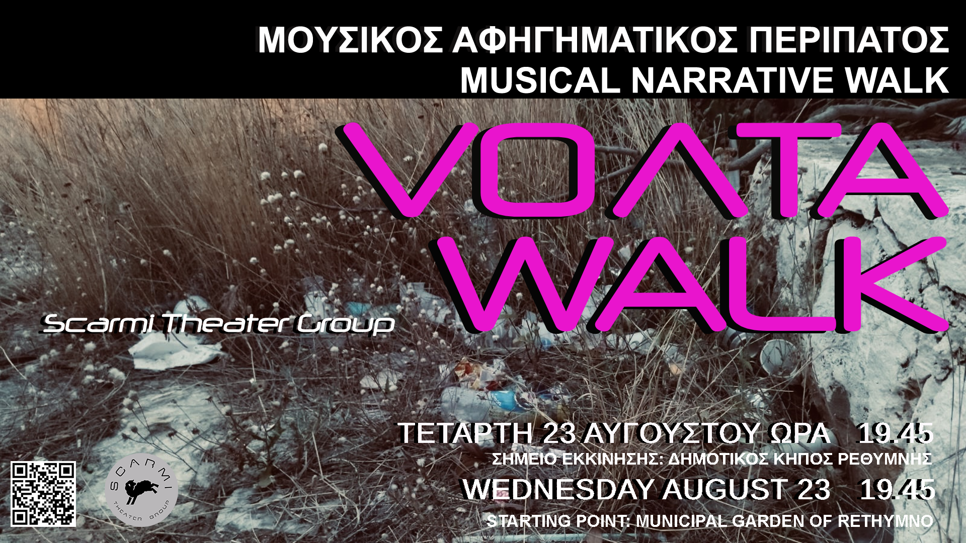 Με βάση το Ρέθυμνο Κρήτης παρουσιάζει έναν μουσικό αφηγηματικό περίπατο με τη χρήση ακουστικών κεφαλής, βασισμένο στον ελεύθερο πειραματισμό μέσω της θεατρικής αφήγησης και της μουσικής, σε άρρηκτη σχέση με το φυσικό τοπίο. Εμπνευσμένος από σύγχρονες καθημερινές σκέψεις ανθρώπων σε συνδυασμό με λογοτεχνικά κείμενα.