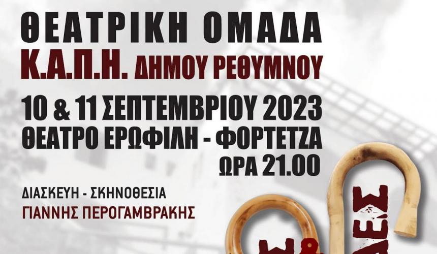 Η παράσταση θα ανεβεί το διήμερο 10 και 11 Σεπτεμβρίου 2023, στο θέατρο ‘Ερωφίλη’ – Φρούριο Φορτέτζα, σε σκηνοθεσία Γιάννη Περογραμβράκη.