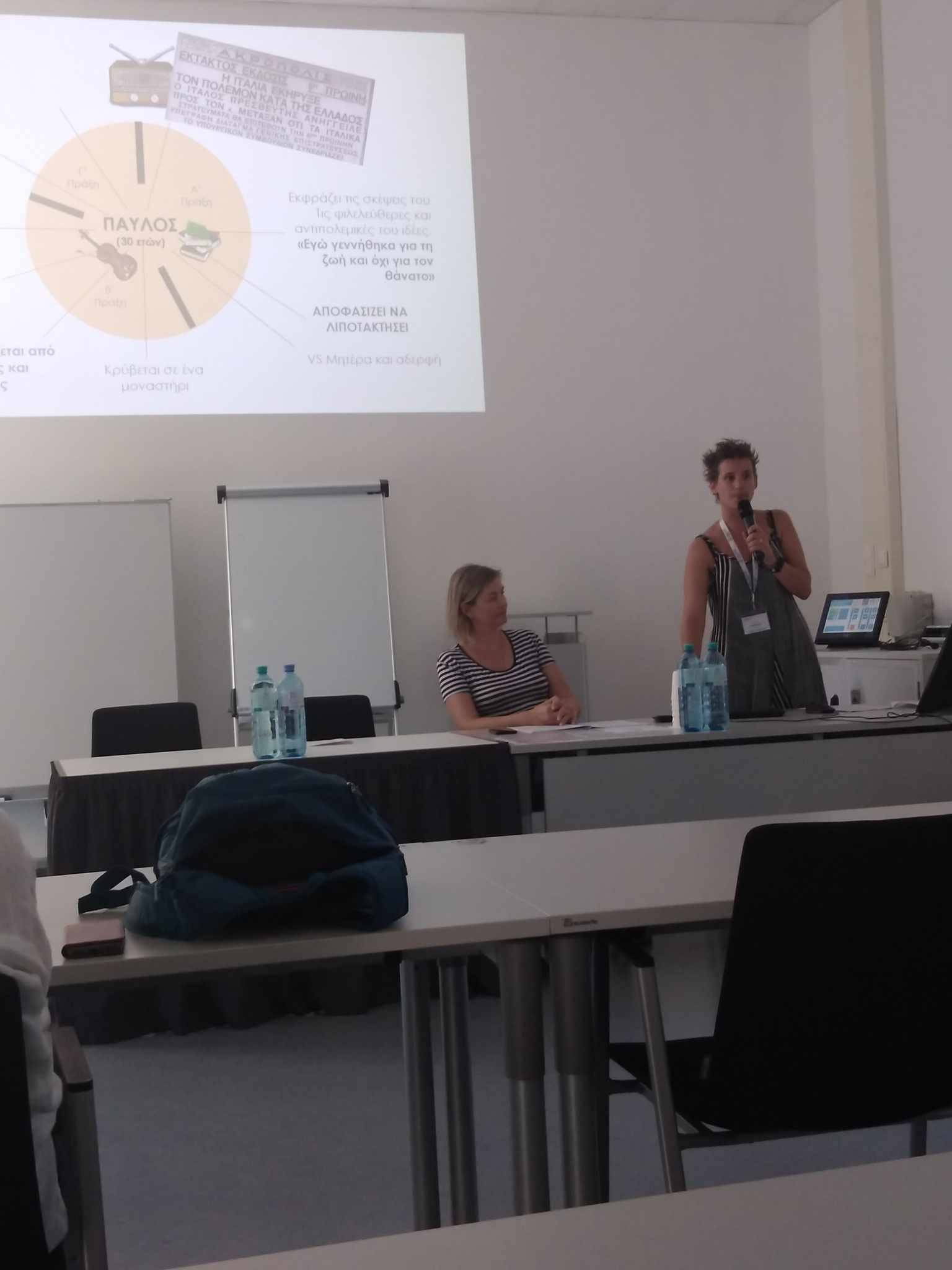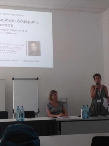 Θέμα της παρουσίασης της στο Ευρωπαϊκό Συνέδριο υπήρξε και πάλι το Ρέθυμνο μας, αναδεικνύοντας την πόλη μας και τον πολιτισμό της, καθώς αφορούσε μια σημαντική πολιτισμική μορφή του Ρεθύμνου, τον φιλόλογο και συγγραφέα Δημήτριο Δαφέρμο. Συγκεκριμένα, η θεατρολόγος παρουσίασε την προσωπική της έρευνα με θέμα «Ο «Λιποτάκτης» του Δηµήτρη Δαφέρµου. Προπαγάνδα ή αντίσταση; Ένα κείµενο που γράφτηκε και παραστάθηκε κατά τη διάρκεια του πολέµου του 1940 – 1941. (Ρέθυµνο)».