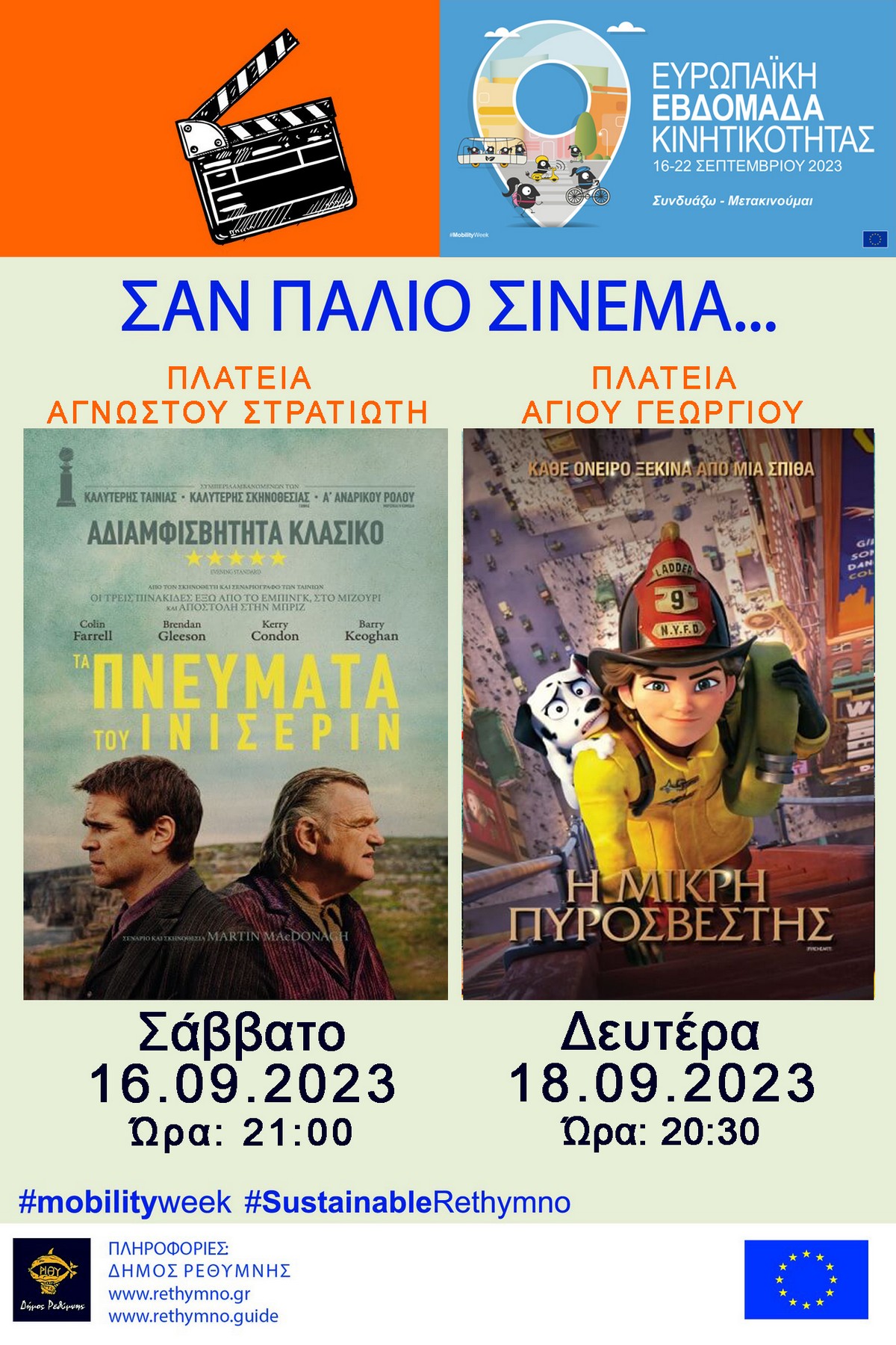 - Δευτέρα 18 Σεπτεμβρίου 2023: Προβολή παιδικής ταινίας , από τις 8.30 μμ. έως τις 10.30 μ.μ., στην πλατεία Αγίου Γεωργίου