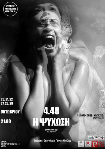 Ένα δωμάτιο ενός ψυχιατρείου: ένα παραλήρημα μιας κοπέλας, πριν την αυτοκτονία της. Ένας ψυχιατρικός εγκλεισμός. Η ωμή πραγματικότητα εισβάλει εκεί και γίνεται βίαιη, μέσω της σχέσης που αναπτύσσει, η κοπέλα με την γιατρό της. Μια τραυματισμένη ψυχή, που βουλιάζει στον κόσμο της, μη μπορώντας να εξοικειωθεί με την πραγματικότητα και το σώμα της. Σκηνές ακραίας ψυχικής και σωματικής βίας. Με το 4.48 δηλώνεται η ώρα που προσδιορίζει την αυτοκτονίας της.