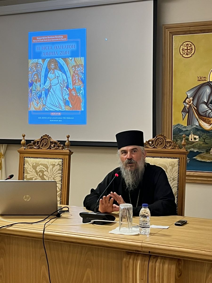 Το απόγευμα της Δευτέρας, 9ης Οκτωβρίου 2023, στις κατάμεστες αίθουσες του Κέντρου Πολιτισμικής και Κοινωνικής Διακονίας «ΘΕΟΜΗΤΩΡ» της Ιεράς Μητροπόλεως Ρεθύμνης και Αυλοποτάμου, παρουσιάσθηκε το βιβλίο με τίτλο «Η ΜΕΤΑ ΘΑΝΑΤΟΝ ΑΙΩΝΙΑ ΖΩΗ», το οποίο μόλις κυκλοφόρησε σε δεύτερη έκδοση, πόνημα του Πανοσιολογιωτάτου Αρχιμανδρίτου Βασιλείου Παπαδάκη, Ηγουμένου της Ιεράς Μονής Αγίας Αναστασίας της Ρωμαίας Ρεθύμνης.