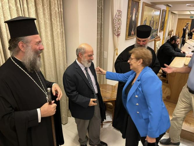Χαιρετισμό απηύθυνε ο συγγραφέας του βιβλίου, Πανοσιολ. Αρχιμ. Βασίλειος Παπαδάκης, ο οποίος εξέφρασε την ευγνωμοσύνη του προς τον αοίδιμο Γέροντά του, Ηγούμενο της Ιεράς Μονής Γρηγορίου Αγίου Όρους, μακαριστό Αρχιμανδρίτη Γεώργιο Καψάνη, προς αδελφούς της Ιεράς Μονής που στάθηκαν δίπλα του σε όλη τη συγγραφική του προσπάθεια, καθώς και προς όλους τους ανθρώπους που ανταποκρίθηκαν στην πρόσκληση της Τοπικής μας Εκκλησίας για την παρουσίαση της δεύτερης έκδοσης του εν λόγω βιβλίου.