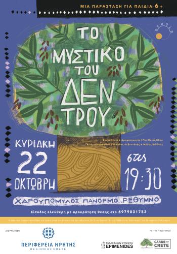 Η Εταιρεία Θεάτρου & Παραστατικών Τεχνών BEHOLD παρουσιάζει για μία ακόμη φορά Το μυστικό του δέντρου, μια παράσταση που απευθύνεται στο παιδικό και νεανικό κοινό, σε μια προσπάθεια να διερευνήσουν και να τοποθετηθούν από κοινού πάνω σε ζητήματα της κλιματικής κρίσης και της ανθρώπινης συνύπαρξης με το περιβάλλον. Η παραγωγή πραγματοποιήθηκε πρώτη φορά τον Αύγουστο του 2023 στον Χαρουπόμυλο Πανόρμου Ρεθύμνης, στο πλαίσιο του προγράμματος 2023 του θεσμού «Όλη η Ελλάδα ένας Πολιτισμός» του Υπουργείου Πολιτισμού, με την υποστήριξη της Πολιτιστικής Εταιρείας Πανόρμου “Επιμενίδης”.