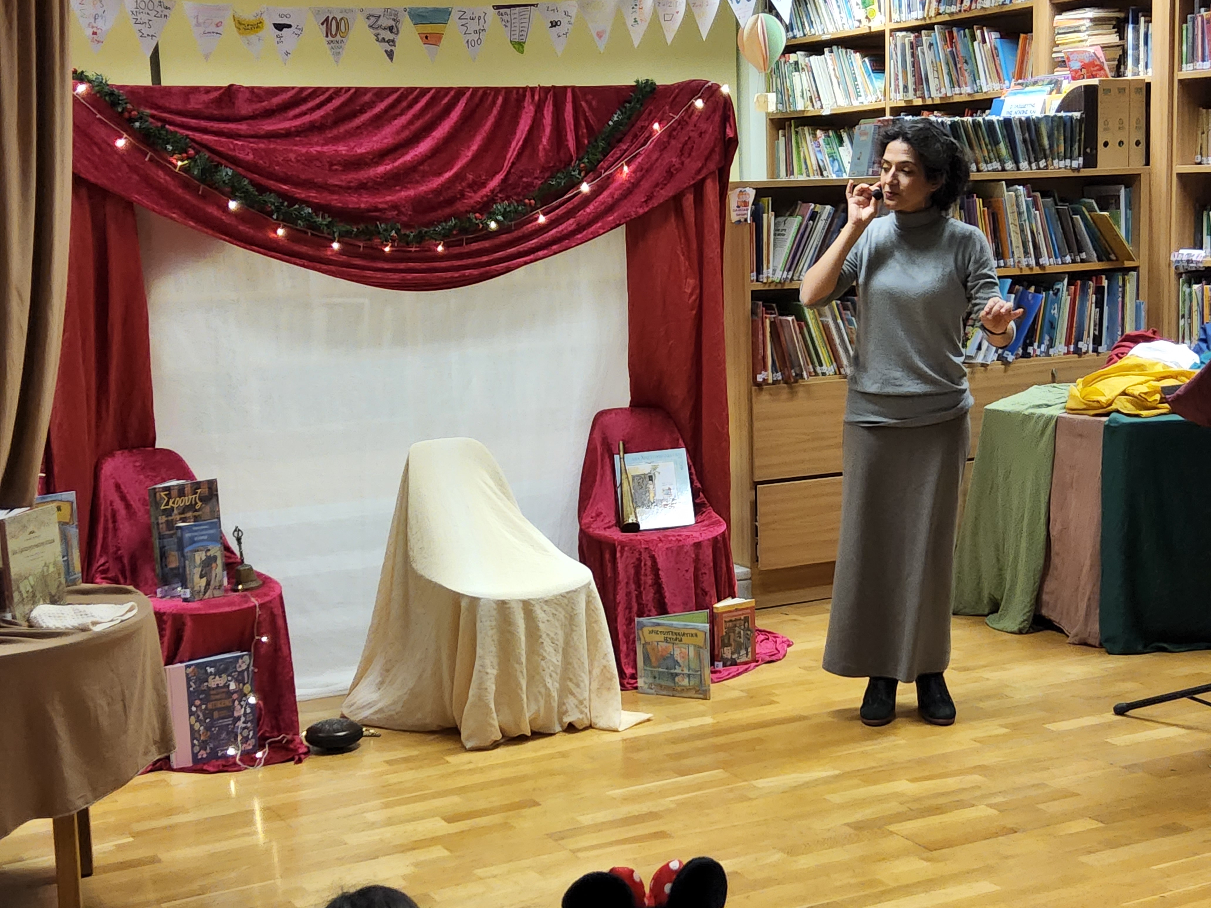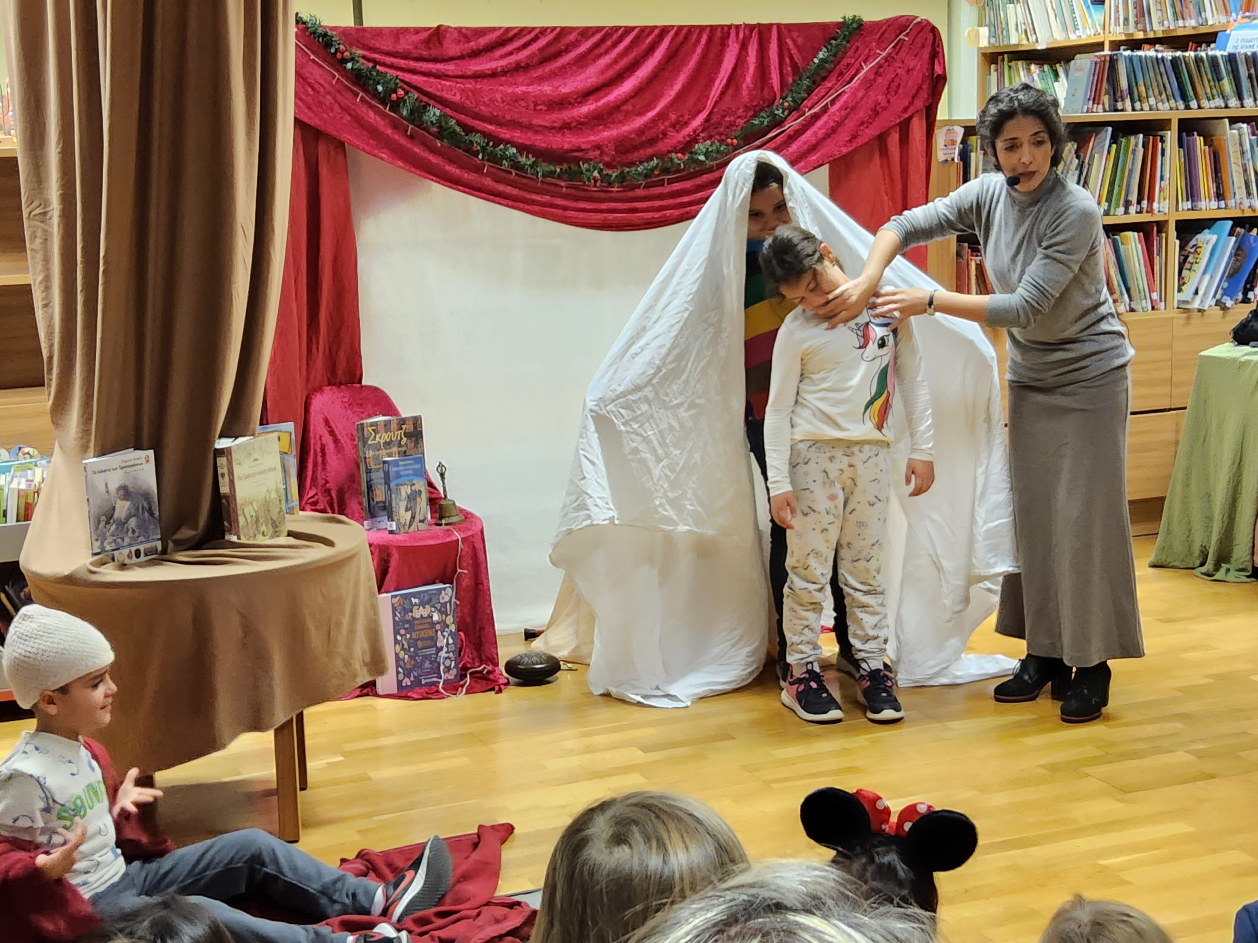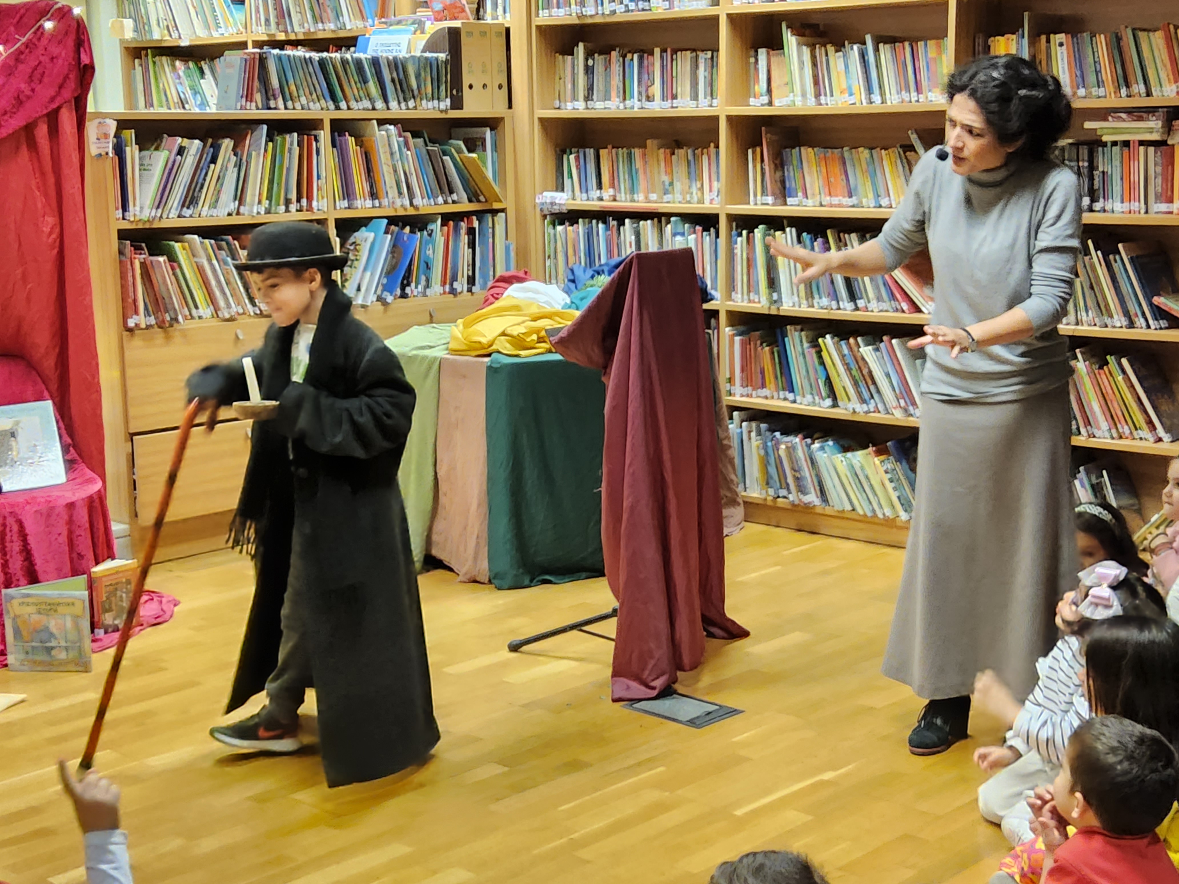 Μικροί αλλά και μεγάλοι ηθοποιοί έδειξαν το ταλέντο τους στην κατάμεστη αίθουσα της βιβλιοθήκης. Συμμετείχαν όχι μόνο οι μικροί μας φίλοι μα είχαν την τύχη και κάποιοι από τους γονείς τους.