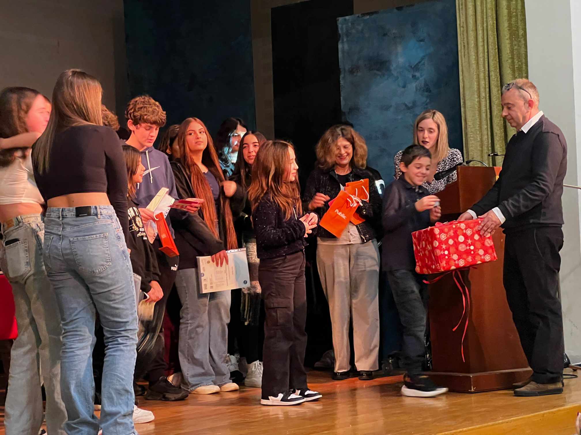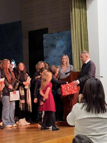 Στη συνέχεια όλοι μαζί τραγουδήσαμε γερμανικά χριστουγεννιάτικα τραγούδια και ακολούθησε η απονομή των πιστοποιητικών γλωσσομάθειας στους επιτυχόντες μαθητές της προηγούμενης εξεταστικής περιόδου, οι οποίοι συμμετείχαν σε κλήρωση πλούσιων δώρων, προσφορά των εκδοτικών οίκων: Burlington Books, Hamilton House και Express Publishing.