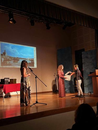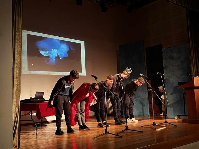 Την Πέμπτη 21 Δεκεμβρίου 2023 στο Σπίτι του Πολιτισμού απολαύσαμε τις μαθήτριες και τους μαθητές των Κ.Ξ.Γ. Schiller σε σκηνές από 5 διάσημα έργα του Άγγλου θεατρικού συγγραφέα και ποιητή William Shakespeare: Ο Έμπορος της Βενετίας, Μακμπέθ, Ρωμαίος και Ιουλιέτα, Όνειρο Καλοκαιρινής Νύχτας, Άμλετ, και μάθαμε πολύ ενδιαφέρουσες πληροφορίες για τον ίδιο τον συγγραφέα και την εποχή του!