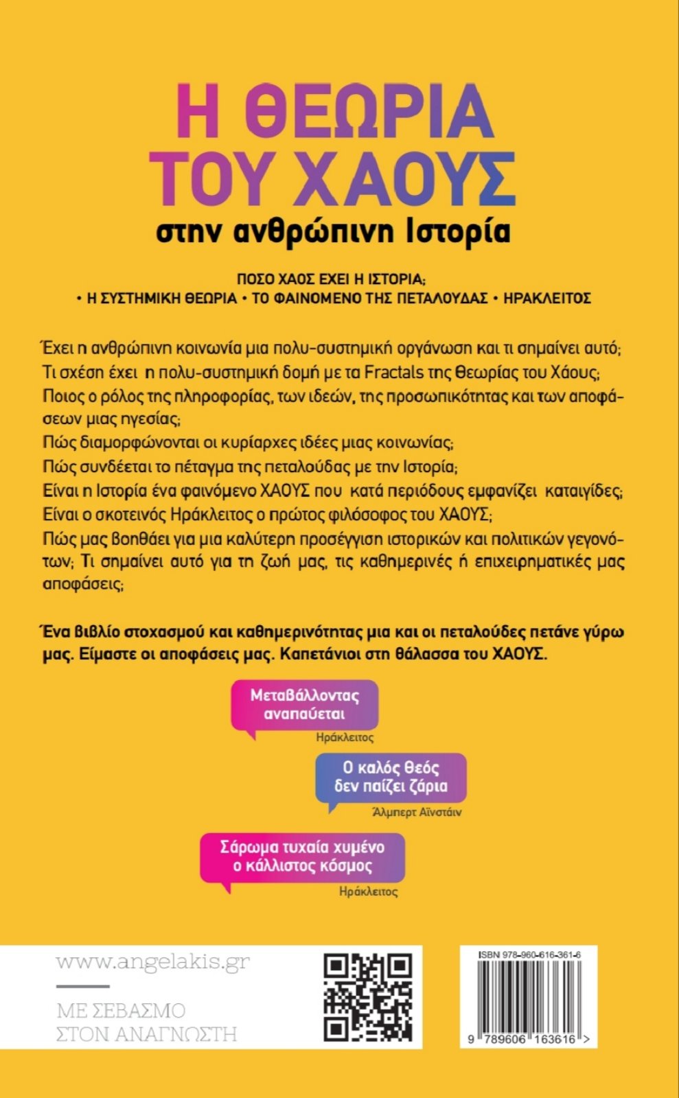 Πρόσφατα, το Νοέμβριο του 2023, εκδόθηκε το βιβλίο <<Η θεωρία του χάους στην ανθρώπινη ιστορία>> από τις εκδόσεις Αγγελάκη, του Ιατρού ΩΡΛ Γεωργίου Φρούντζου. Η αρχική ανταπόκριση και το ενδιαφέρον των αναγνωστών είναι πολύ καλή. Έτσι βρίσκεται ήδη στις πρώτες θέσεις των πωλήσεων στην κατηγορία του, στις νέες κυκλοφορίες ,σε μεγάλα βιβλιοπωλεία της Αθηνάς. Το βιβλίο προσπαθεί να απαντήσει στο μεγάλο ερώτημα ,που από την έναρξη , αρχικά της φιλοσοφίας και αργότερα της επιστήμης ,απασχολεί κάθε άνθρωπο ,τι είναι κόσμος και τι είναι η ιστορία. Αυτό γίνεται μέσα από την οπτική ,της πολύ σύγχρονης, Θεωρίας του Χάους, της μεγαλύτερης ίσως επιστημονικής επανάστασης των τελευταίων 50 χρόνων. Στην προσπάθεια αυτής της προσέγγισης χρησιμοποιεί σύγχρονα εργαλεία ανάλυσης, όπως την Συστημική θεωρία, παρουσιάζοντας το σύνολο της κοινωνίας ως πολυστημική, την θεωρία της πληροφορίας, τα κοινωνικά δίκτυα. Εργαλεία και Θεωρίες που βρίσκονται στην αιχμή της σύγχρονης σκέψης και διδάσκονται σε πολλά και σημαντικά ΜΒΑ διεθνώς. Με ιστορικά παραδείγματα αναδεικνύει την σχέση αυτών με την ιστορία, ενώ το βιβλίο, στο τελευταίο μέρος του ,φωτίζει την σκέψη του σκοτεινού Εφέσιου φιλοσόφου, Ηράκλειτου, με τα σύγχρονα αυτά φώτα, παρουσιάζοντας τον Ηράκλειτο ως τον πρώτο φιλόσοφο του Χάους. Αυτό γίνεται με την ίδια έννοια που και ο Δημόκριτος μπορεί να θεωρηθεί ως ο πρώτος φιλόσοφος που διατύπωσε την ατομική θεωρία. Σε κάθε περίπτωση αξίζει να προσεχθεί και να διαβαστεί με ενδιαφέρων.