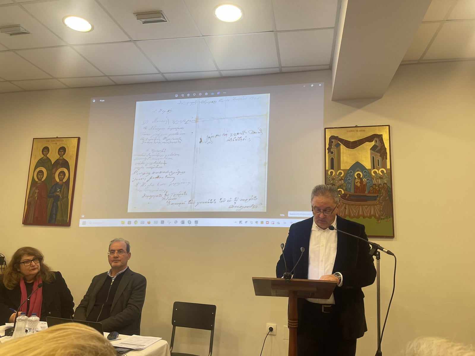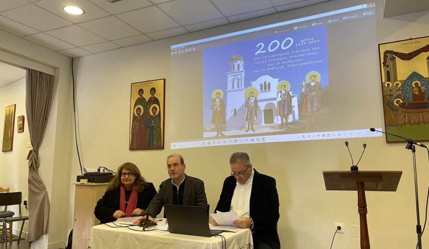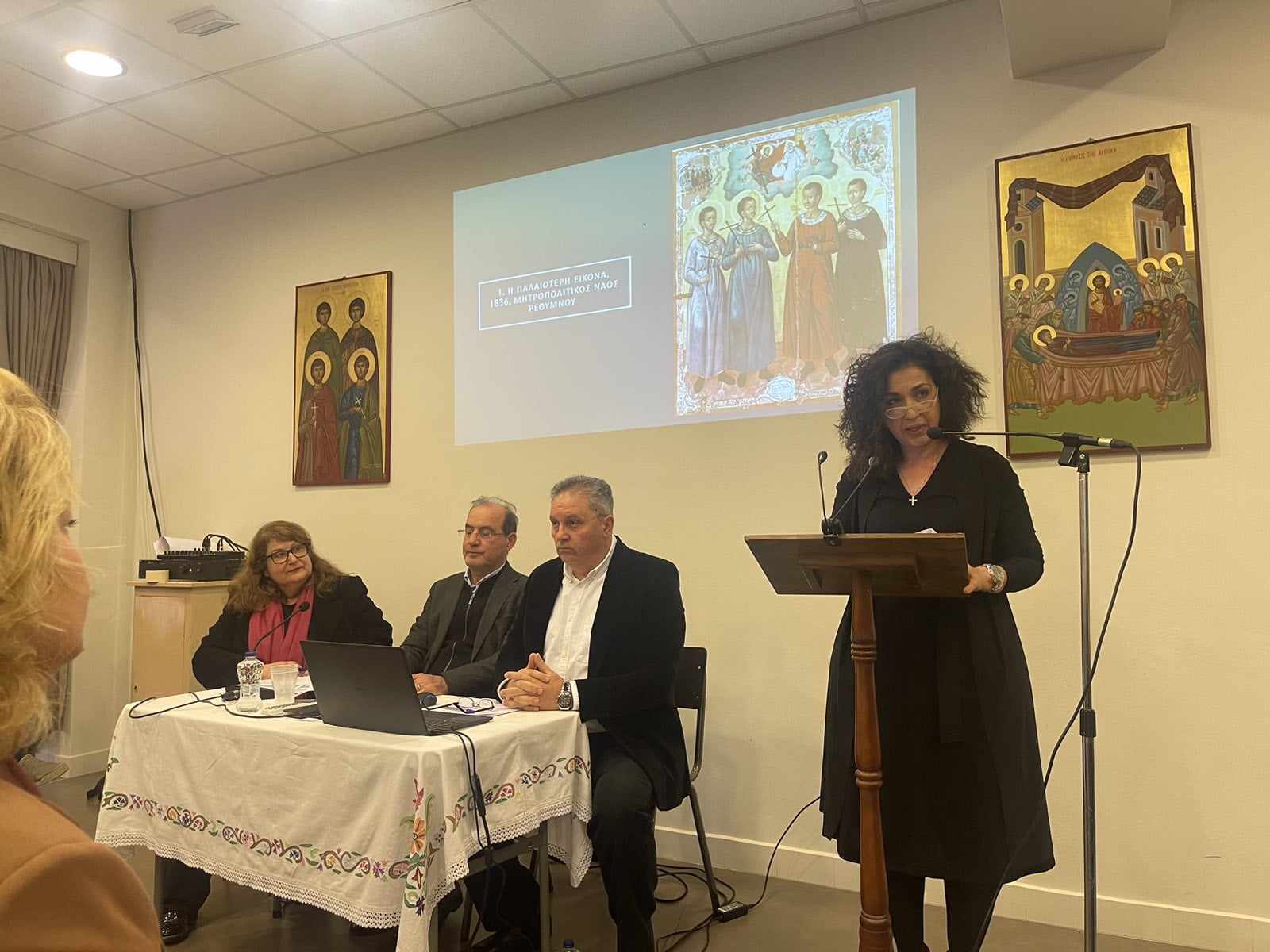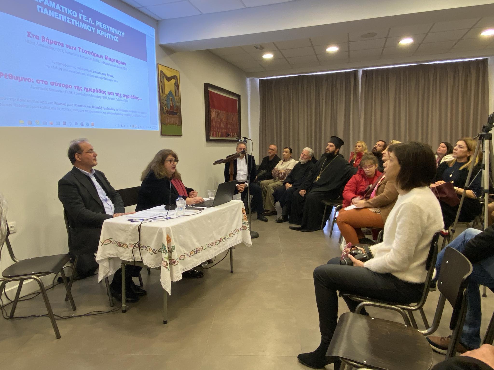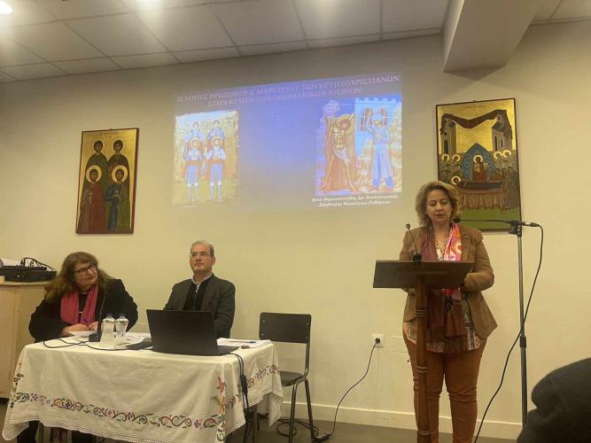 Η κυρία Άννα Παρασκευαΐδη, Δρ. Παιδαγωγικής, Σύμβουλος Φιλολόγων Ρεθύμνου αναφέρθηκε στις «Ιστορίες ηρωισμού και μαρτυρίου των Κρυπτοχριστιανών στην Κρήτη των Οθωμανικών χρόνων» και ακολούθησε η εισήγηση της Θεολόγου κυρίας Αναστασίας Κοπανάκη, «Ένα σιωπηλό κήρυγμα: μια προσέγγιση στην εικονογραφία των 4ων Μαρτύρων».