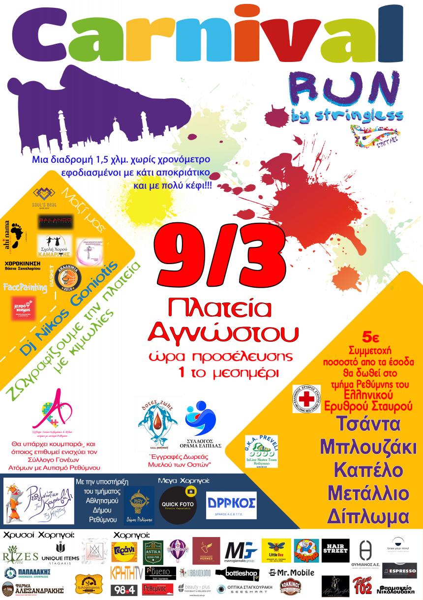 Ακόμα ΜΙΑ ΠΑΡΕΑ! Ακόμα μια γιορτή για το Ρεθεμνιώτικο Καρναβάλι, που «ντύνεται» με αθλητικό πνεύμα και στέλνει το σύνθημα της υγιούς άμιλλάς προσκαλώντας μικρούς και μεγάλους σε ένα αγώνα δρόμου χαράς και κεφιού!