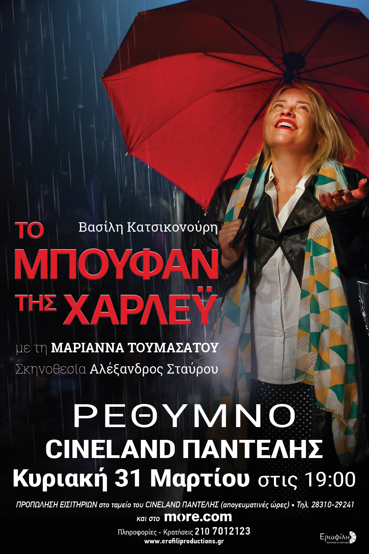 Προπώληση: https://www.more.com/theater/to-mpoufan-tis-xarley-periodeia/ και στο ταμείο του CineLand Παντελής.