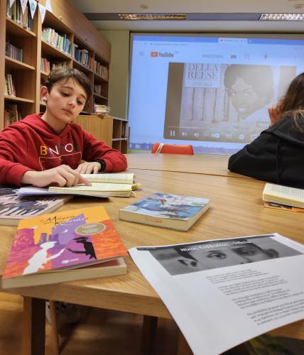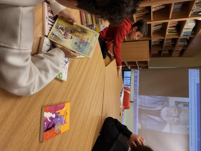 Ακούγοντας μουσικές επιλογές του συγγραφέα αλλά και τον ίδιο να μιλά για τον ήρωά του, κατάφεραν με την καθοδήγηση της κ. Κόρκου να κατανοήσουν καλύτερα και να συζητήσουν τη Μάσκα του Καπιτάνου.