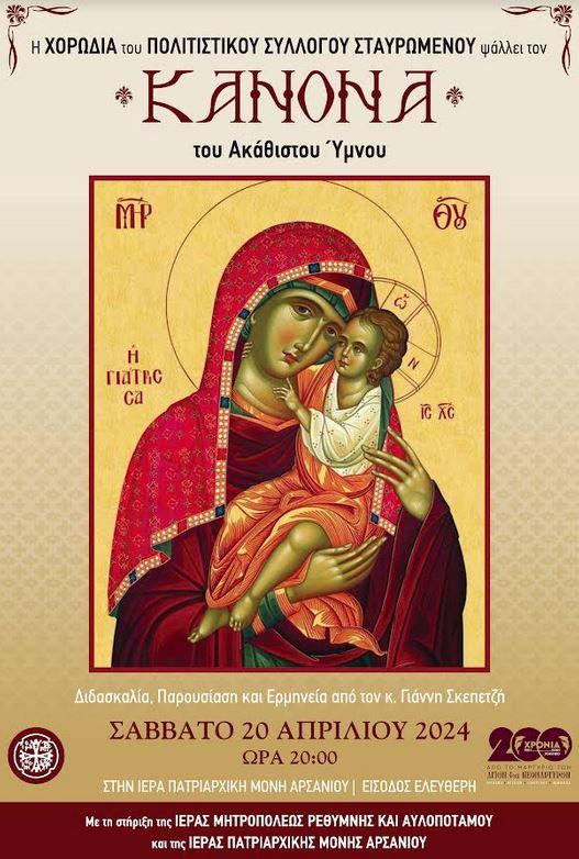 Η εκδήλωση περιλαμβάνει την Παρουσίαση και Ερμηνεία του Κανόνα του Ακάθιστου Ύμνου