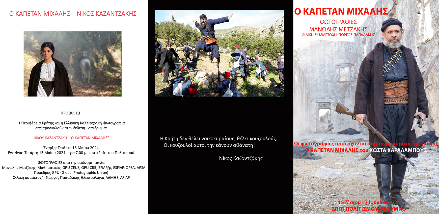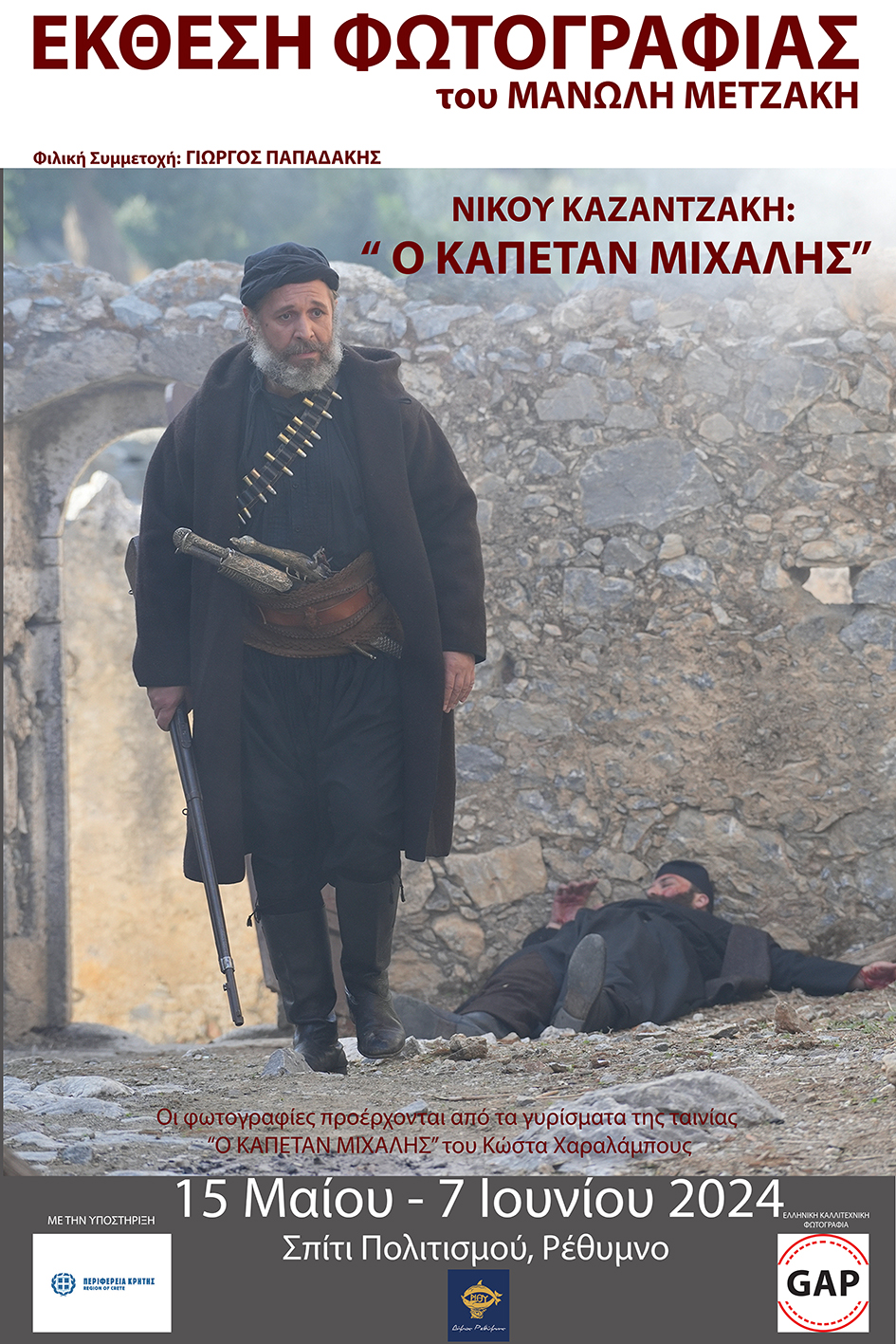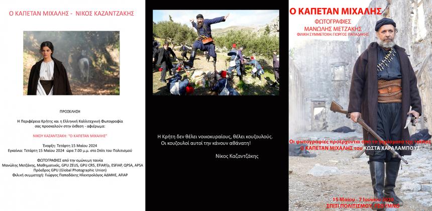 Η έκθεση αποτελείται από φωτογραφίες που τραβήχτηκαν κατά την διάρκεια των γυρισμάτων της ταινίας του σκηνοθέτη κ. Κώστα Χαραλάμπους "Ο Καπετάν Μιχάλης" από τον κ. Μετζάκη Μανώλη καθηγητή μαθηματικών – φωτογραφίας και τον Γιώργο Παπαδάκη υπάλληλο ΑΔΜΗΕ, ηλεκτρολόγο-φωτογράφο, που είχε φιλική συμμετοχή.