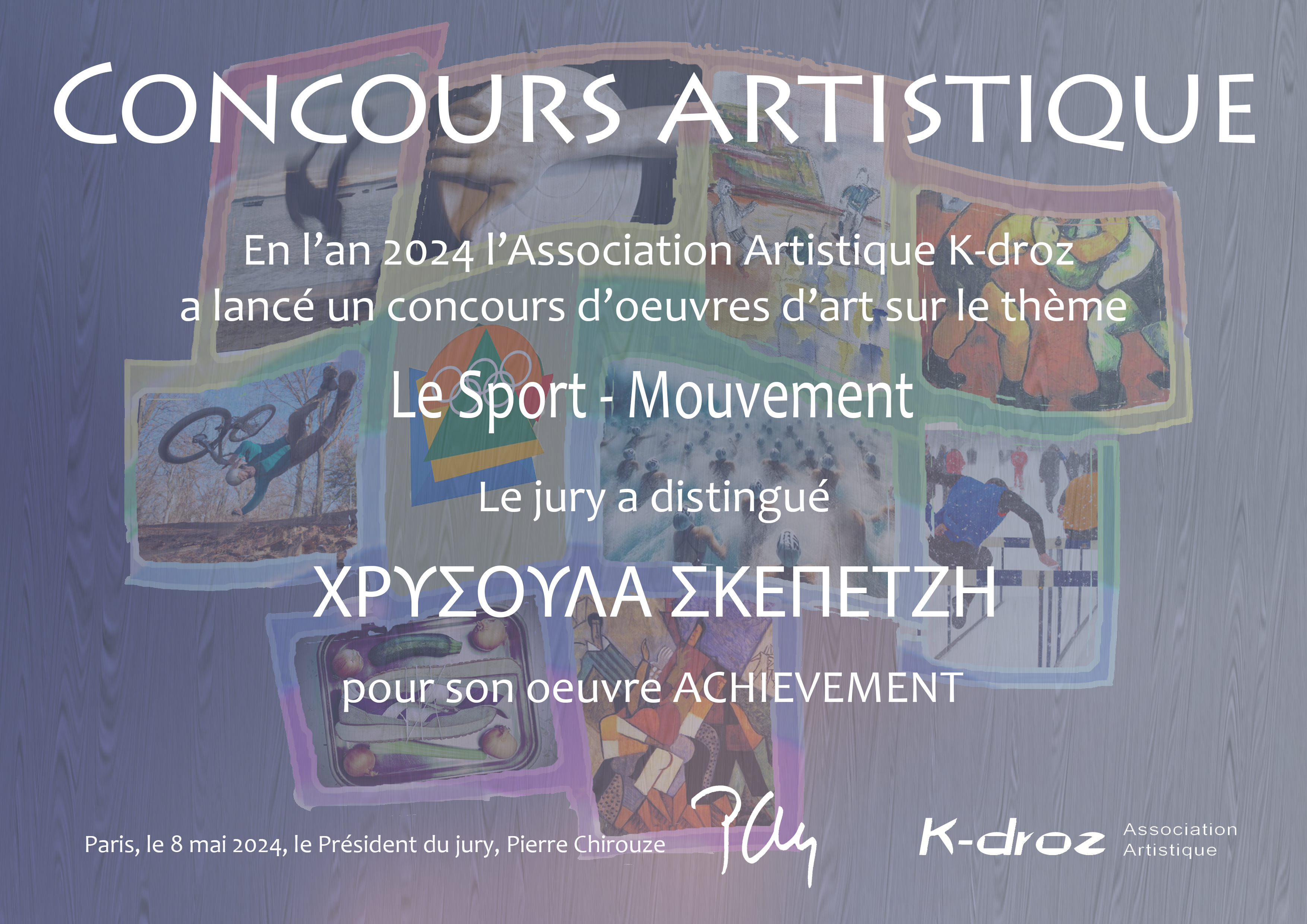 Η εικαστικός Χρυσούλα Σκεπετζή ύστερα από μια ενδιαφέρουσα παρουσία σε διεθνή φόρουμ τέχνης, στις μεγάλες μητροπόλεις του κόσμου, Ν. Υόρκη, Αγ. Πετρούπολη, Παρίσι, Ρώμη, Στοκχόλμη, Βαλένθια, Καζαμπλάνκα, Ντουμπάι, Κων/νουπολη, Τετουάν, Αμβούργο, Ραμπάτ, Μπουένος Άιρες, Όσλο, Ν. Μεξικό, Ελσίνκι κ.λ.π. Με συμμετοχή σε τρεις Μπιενάλε τέχνης του Μεξικού, της Αργεντινής και των Σκοπίων όπου από τις δυο πρώτες έχει αποσπάσει δυο βραβεία. Διακρίθηκε επίσης με πρώτα βραβεία τρεις φορές σε διεθνείς διαγωνισμούς και πριν λίγες μέρες διακρίθηκε για τέταρτη φορά σε διεθνή διαγωνισμό τέχνης, με θέμα τους Ολυμπιακούς αγώνες 2024 που θα πραγματοποιηθούν στο Παρίσι, αποσπώντας για άλλη μια φορά το 1ο βραβείο.