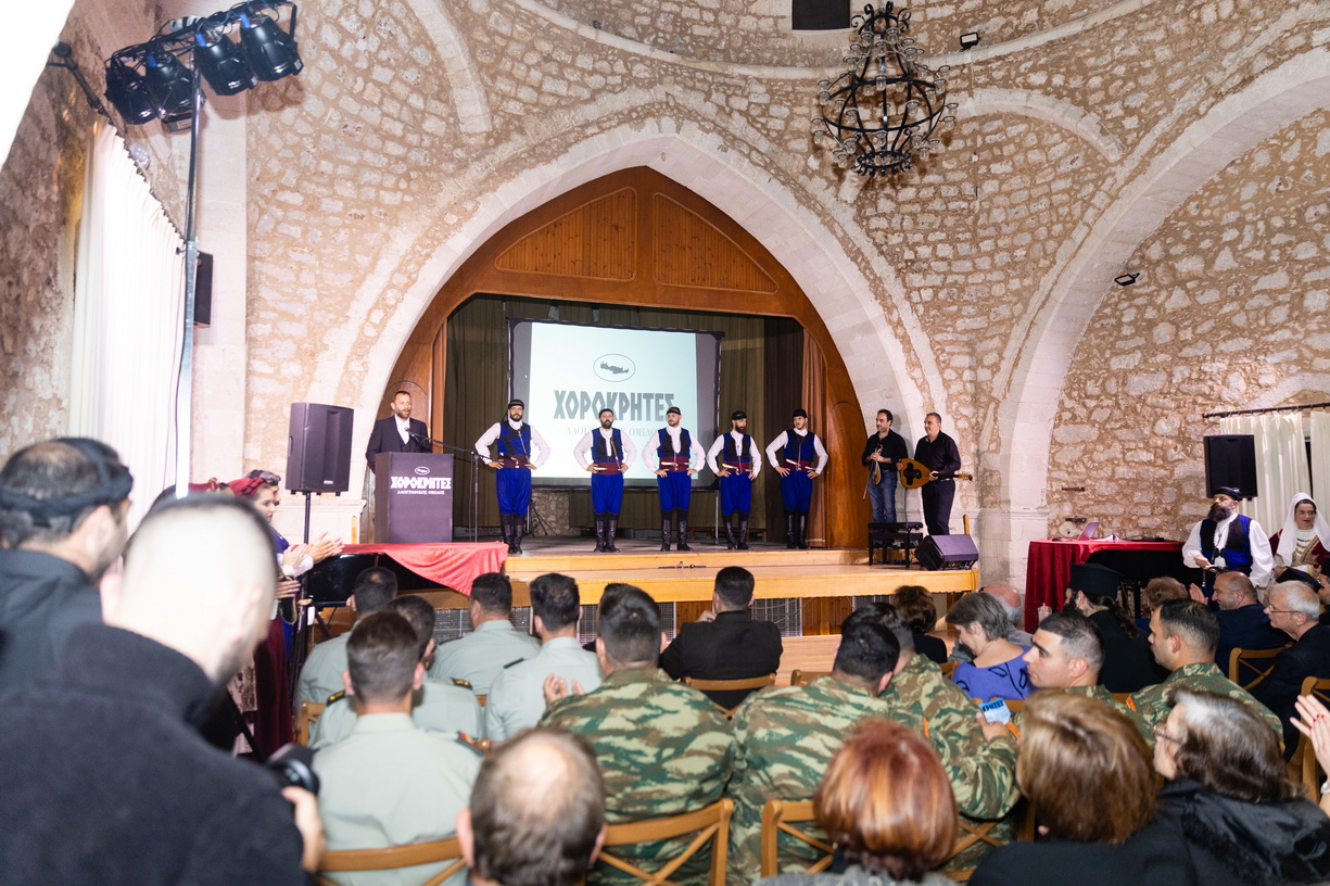 Η ριζίτικη και η χορευτική ομάδα των Χοροκρητών πλαισίωσαν με την μοναδική παρουσία τους την εκδήλωση, συνοδευόμενοι από τους μουσικούς Κώστα Κορδατζάκη στη λύρα και Γιώργο Χαλκιαδάκη στο λαούτο.